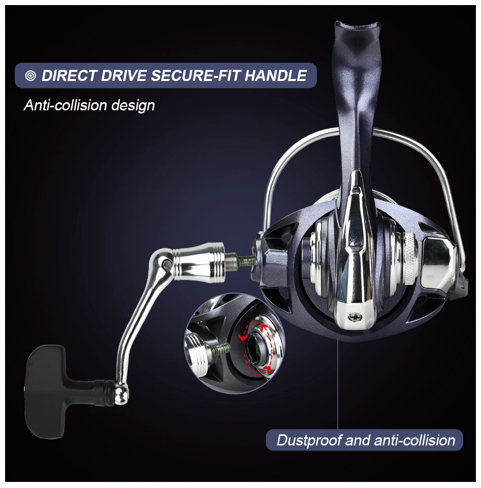 5. Bloqueo instantáneo anti-retroceso, herrajes de acero inoxidable, mango de aluminio