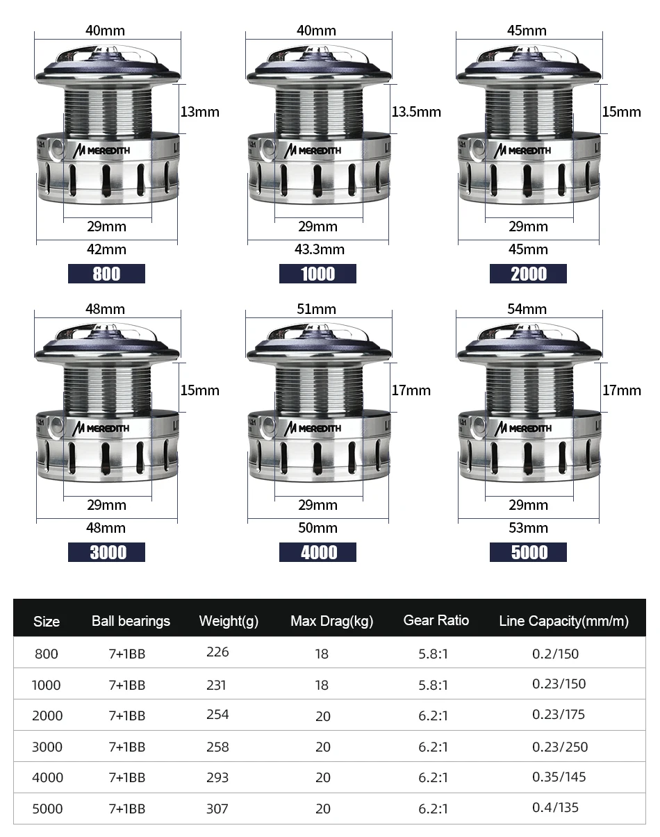 800 | Relación de engranaje: 5,8: 1 | Peso: 226g | Rodamientos: 7 + 1BB | Arrastre máximo: 18KG | Capacidad de Línea: 0,20-150