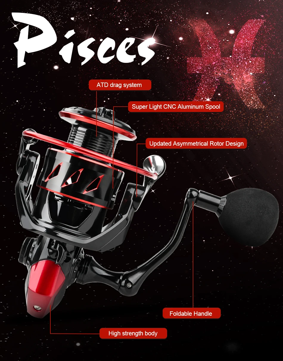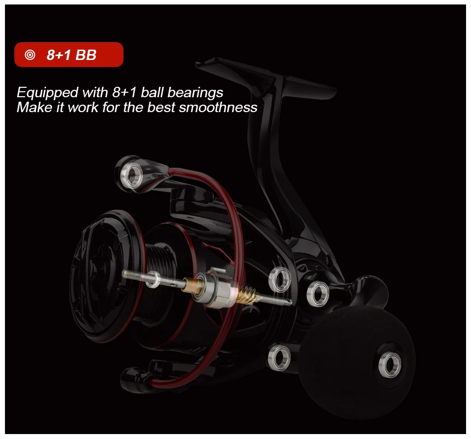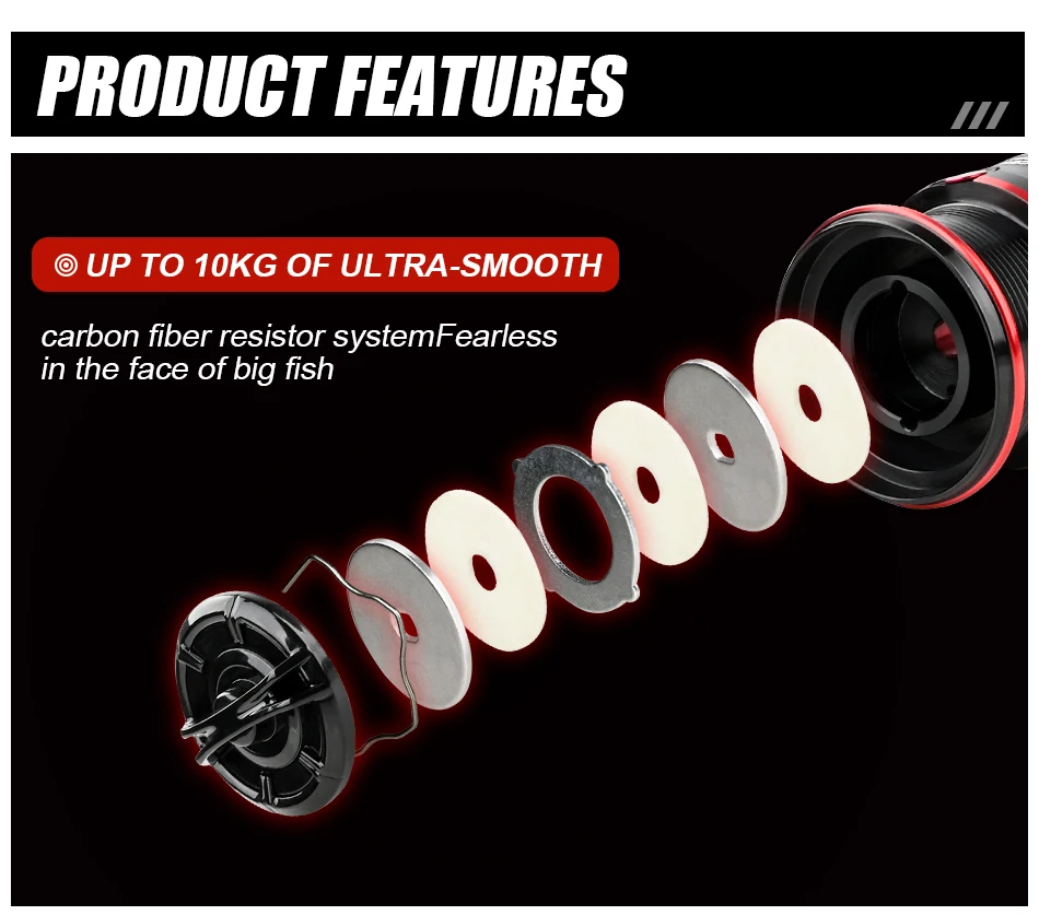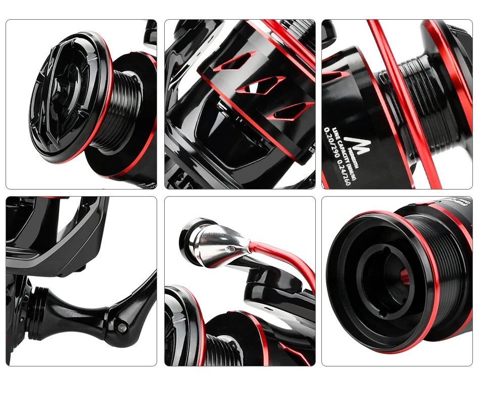 6. El diseño del cuerpo ultrafino y el carrete de aluminio mecanizado CNC son ideales para pescar durante mucho tiempo.