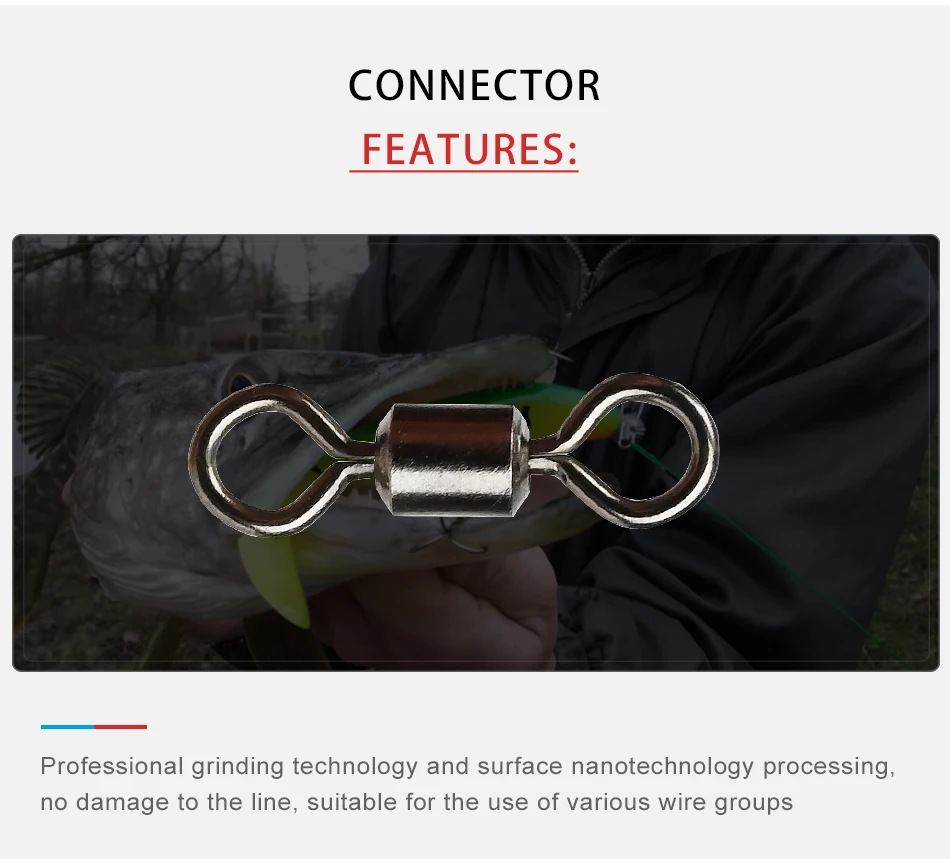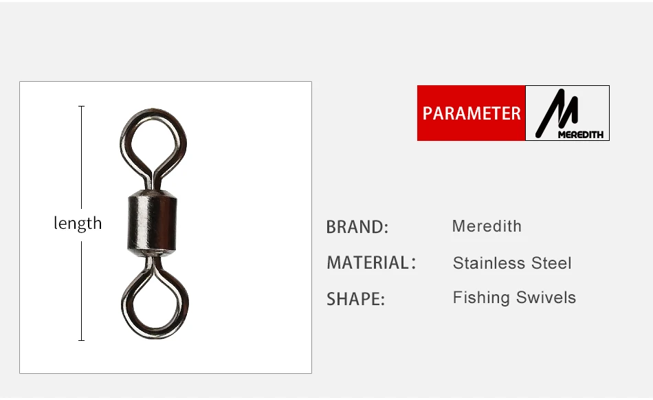 MEREDITH-rodamiento de bolas de pesca, 50 unids/lote de tamaños giratorios de pesca, conector sólido, cuentas de acero inoxidable