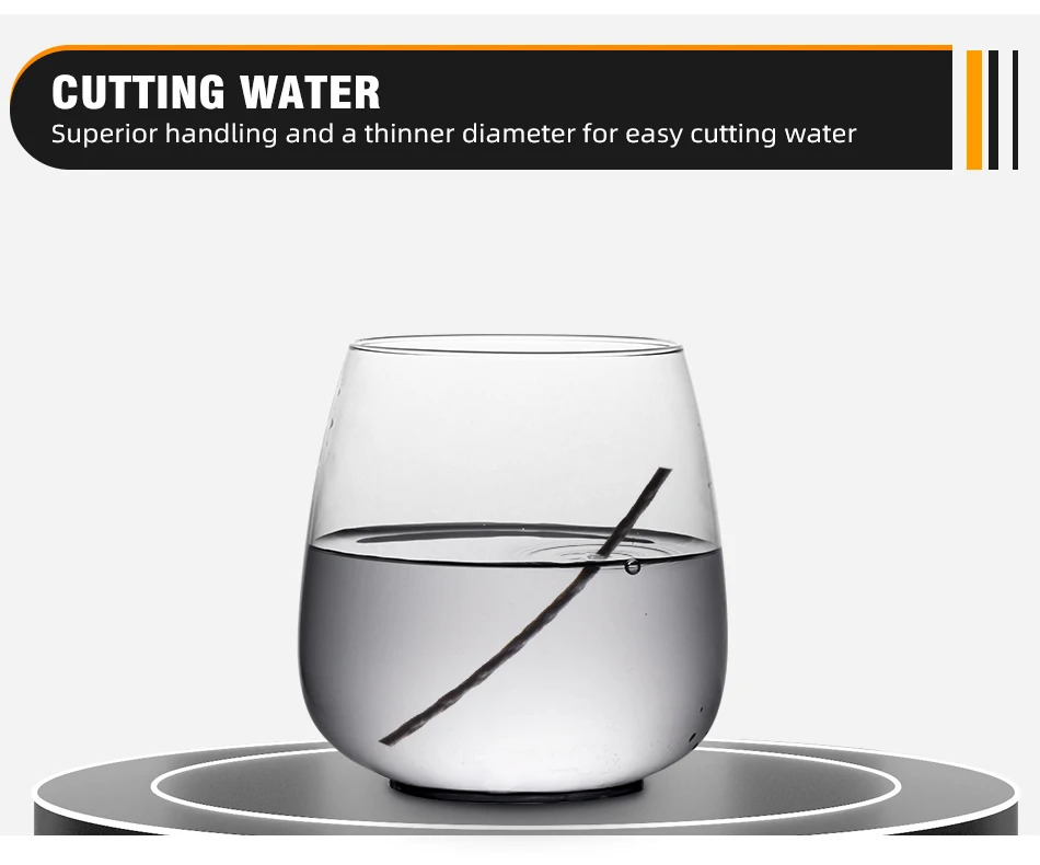 · Manejo superior y un diámetro más delgado para cortar agua fácilmente.