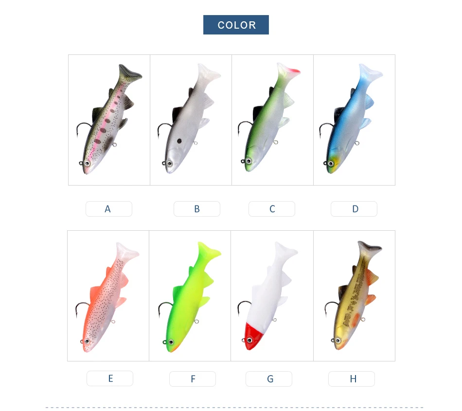 Material: PVC de primera calidadPintura de pintura ambiental, anticorrosión y no fácil de pintar. Acción de natación de cara a cara.Peces objetivo: lubina/truchuta/tambrón rojo, etc. Color: 8 tipos de colores opcionales Longitud: 12 cm/4,72 pulgadasPeso: 38,5 g/1,35 ozPeces simulado: Truchilla.Tipo de agua: tanto para agua dulce como saladaPosición: lago/río/garro/agua poco profunda