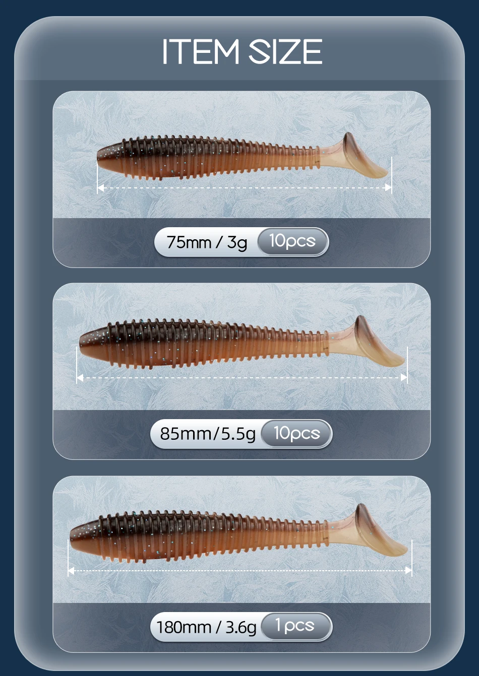Meredith-señuelos de pesca blandos, swimbait de impacto oscilante, cebo de lubina, 85mm/5,5g, 10 unids/lote