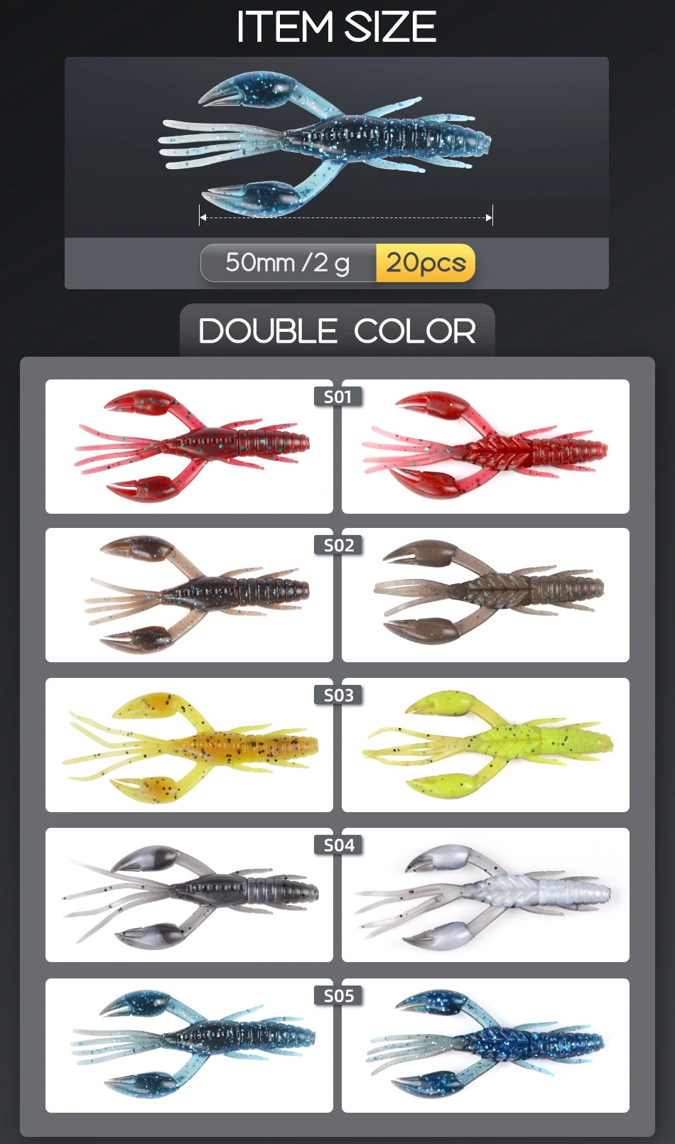 MEREDITH-Señuelos de Pesca de silicona blanda, cebos de pesca de DoliveCraw de 20 piezas, 5cm, 2g