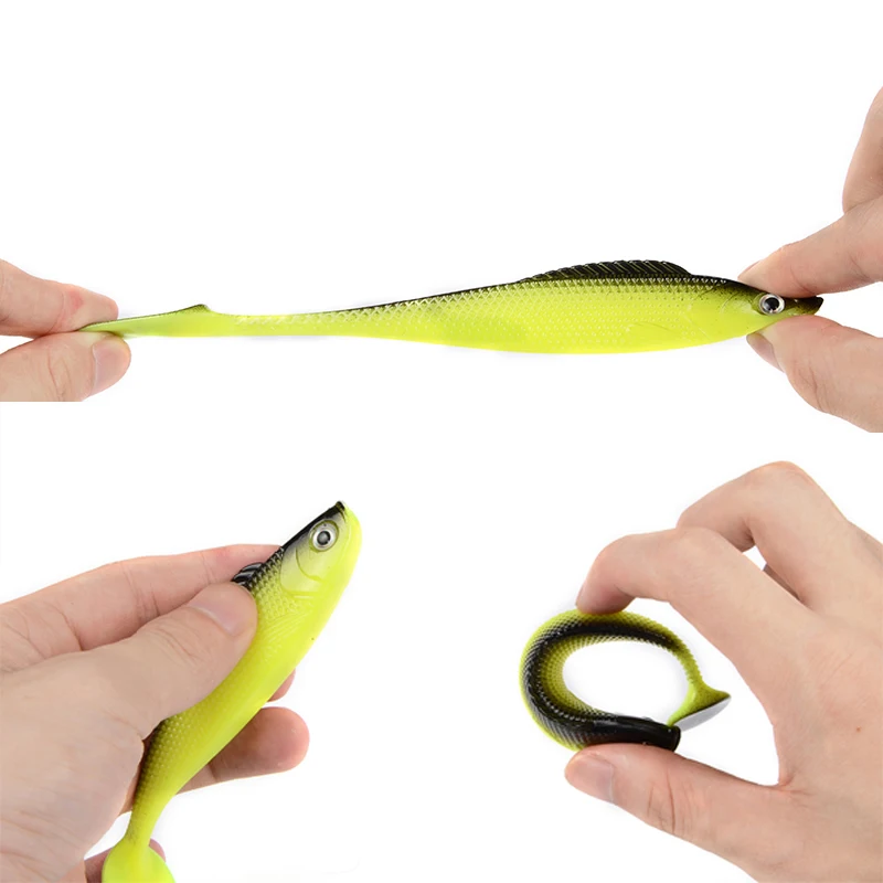 El plástico es de muy buena calidad y flexible. Sin embargo, la forma triangular dificulta su montaje en un anzuelo con plomo o en una jighead.
