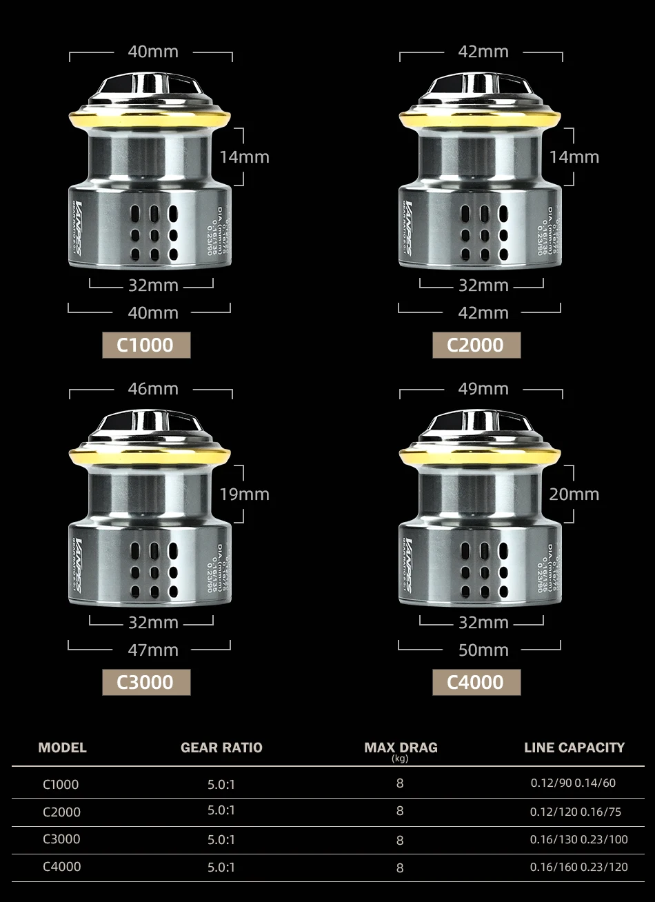 • Alta fuerza de frenado: Con una fuerza de frenado de 8 kg, este carrete puede manejar incluso los peces más duros con facilidad.