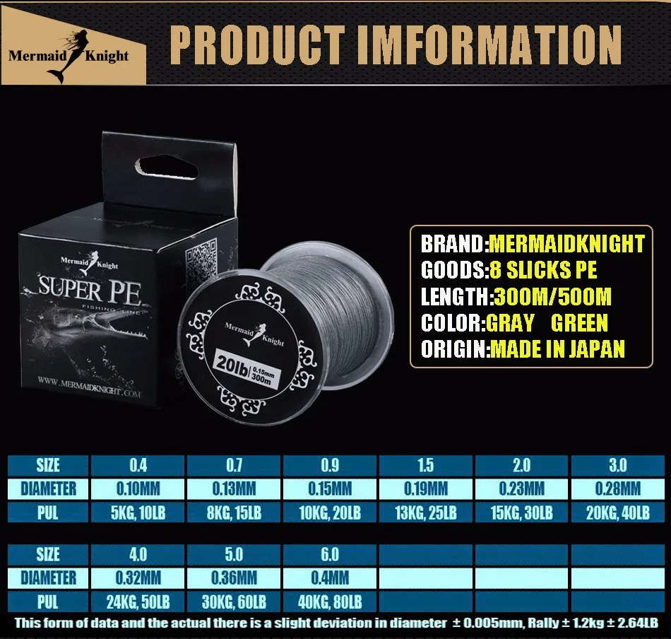 -A new range of bulk advanced mono from MermaidKnight!-Incredible abrasion resistance and knot strength.-Round and smooth design increase casting distance and overall fishability.-Extremely low memory- Easy to cast and handle.-Zero stretch creates a line with extreme sensitivity that delivers rock solid hooksets.-This green line has enhanced strength yet retains a very supple lineextremely hard wearing line too.-Great for everything from match right through to carp!