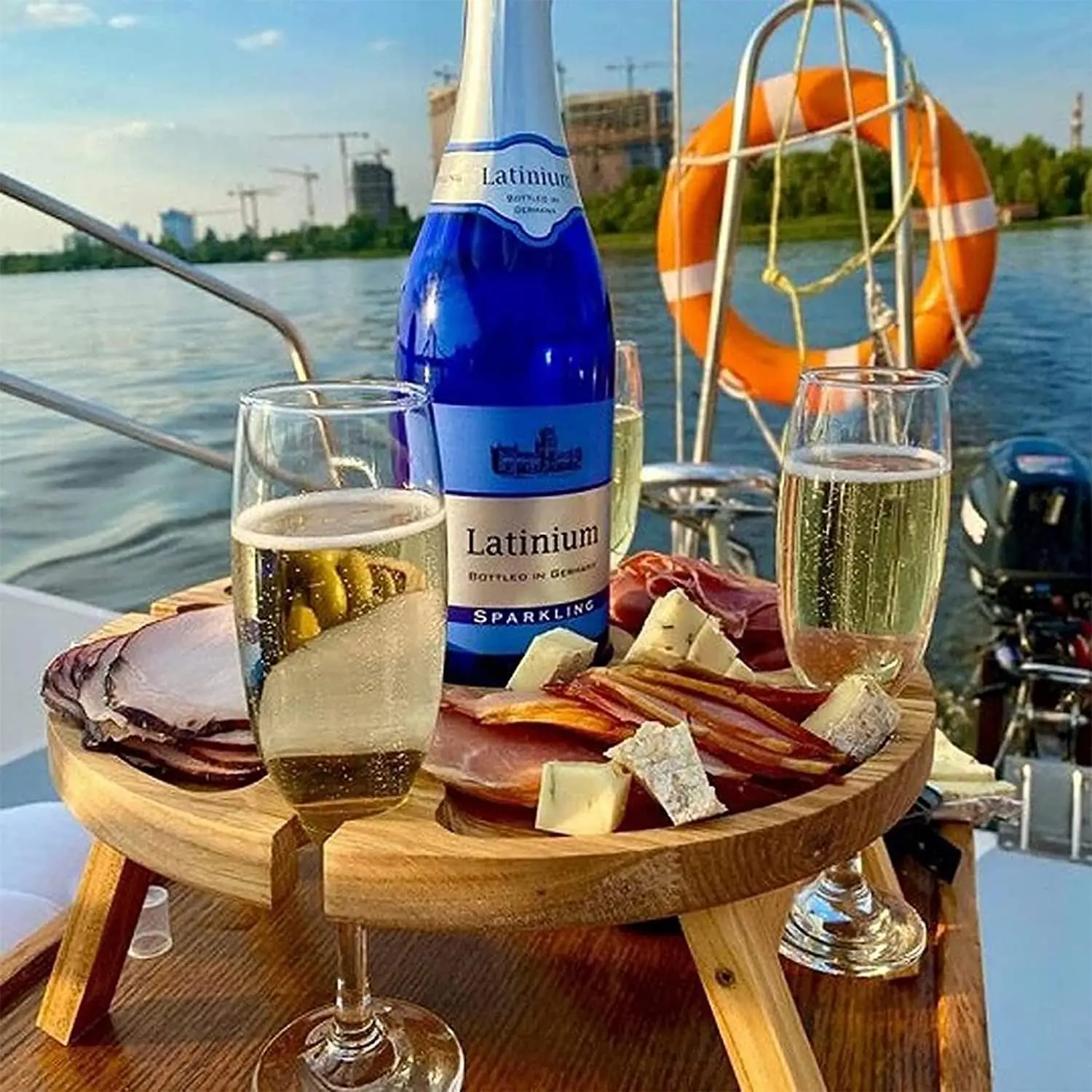 Diseño plegable-Esta mini mesa de picnic cuenta con patas de madera, diseño de madera contrachapada de abedul que se puede plegar, bloquear en posiciones abiertas y cerradas, y viene con dos asas convenientes para una excelente estabilidad.