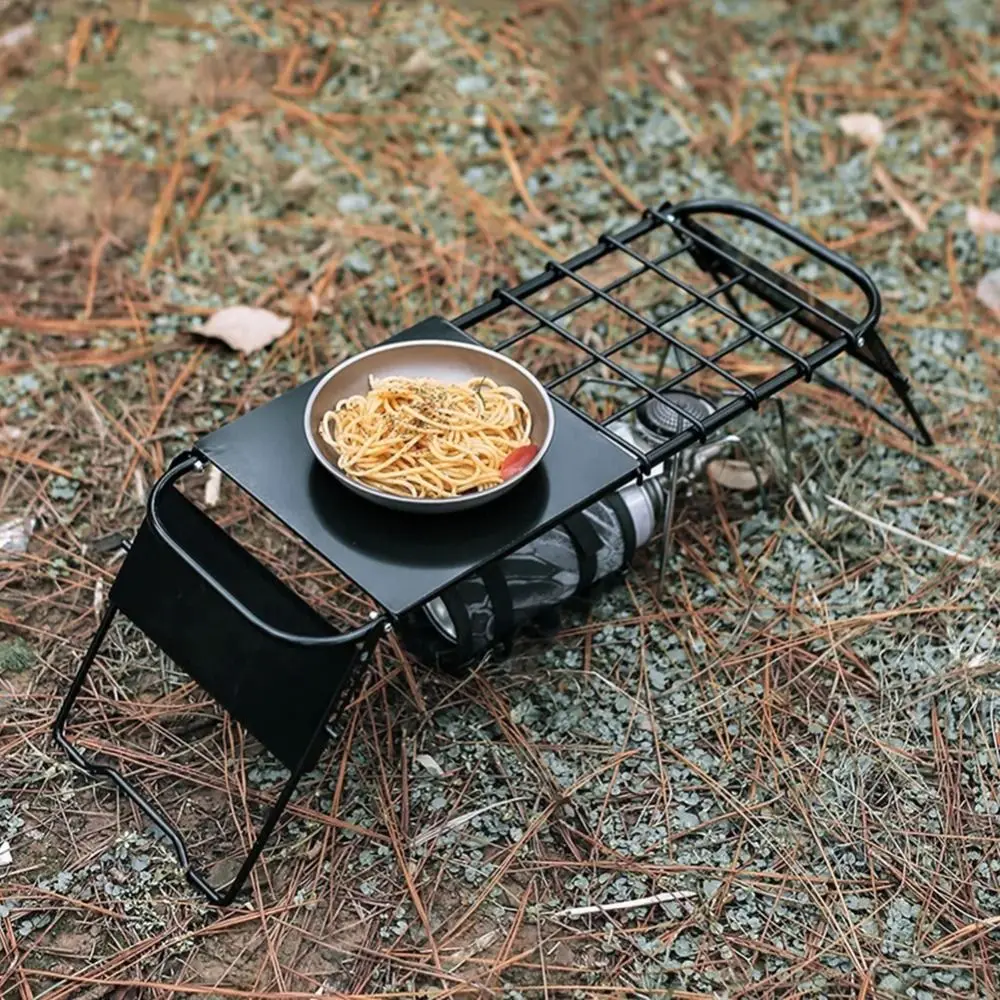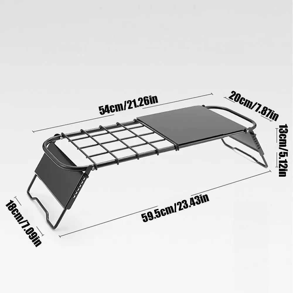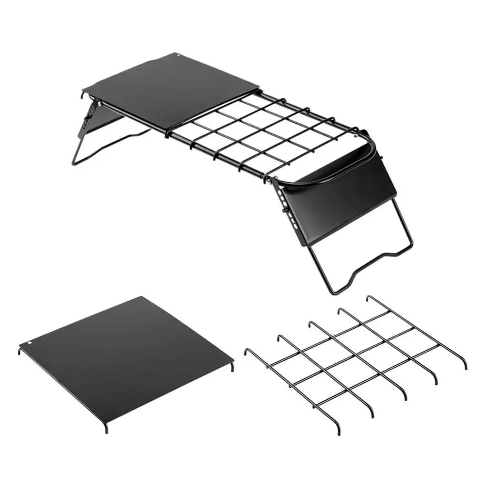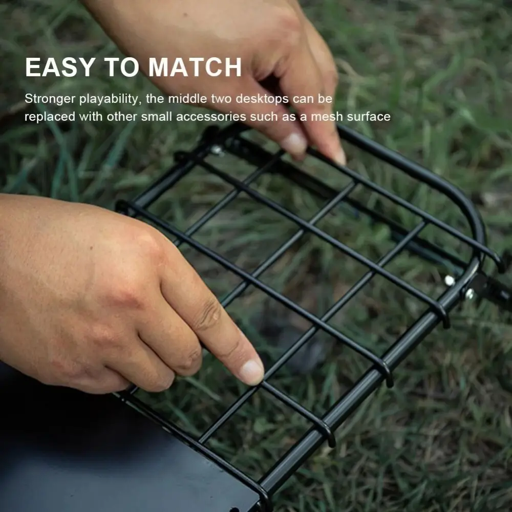 1. Expandable & Adjustable Design: The mini camping table features a unique collapsible frame design that allows it to transform from two tabletops to three, providing extra surface area. This versatility is perfect for accommodating various camping or outdoor activities.