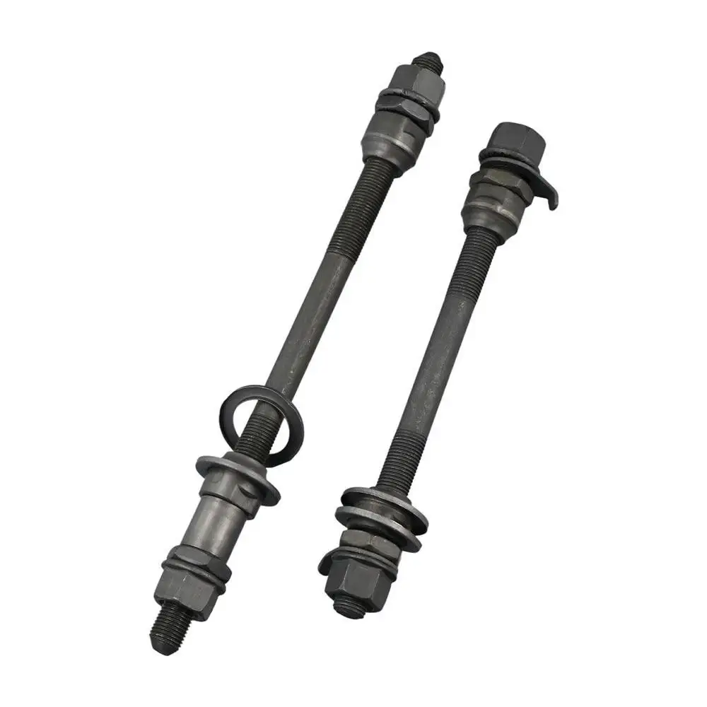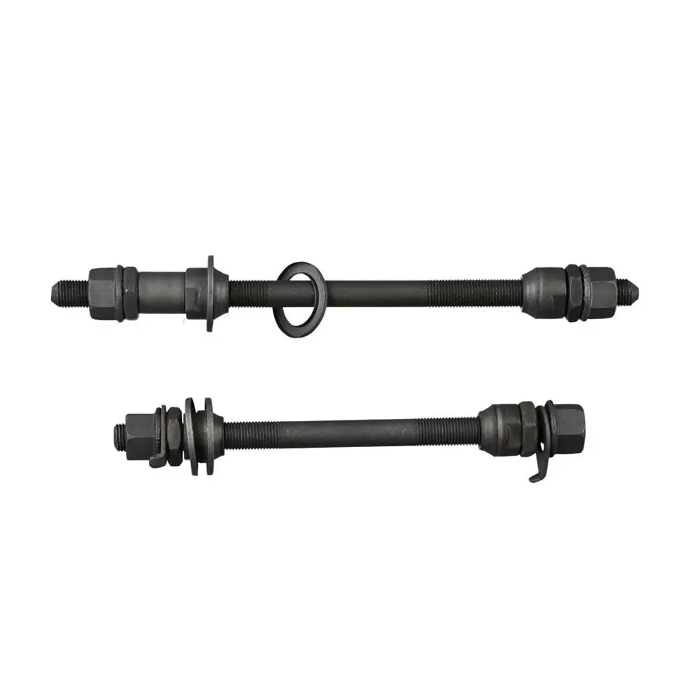 Type:Bike Solid Shaft Material: Iron Length: front 150mm rear 180mm Axle: 9mm Thread diameter: 9.5mm Weight:285g/pair Color: Random (Black/Silver) Package includes: 1pcs / 1 pair Bike Solid Shaft Note: The color sent by randomly.