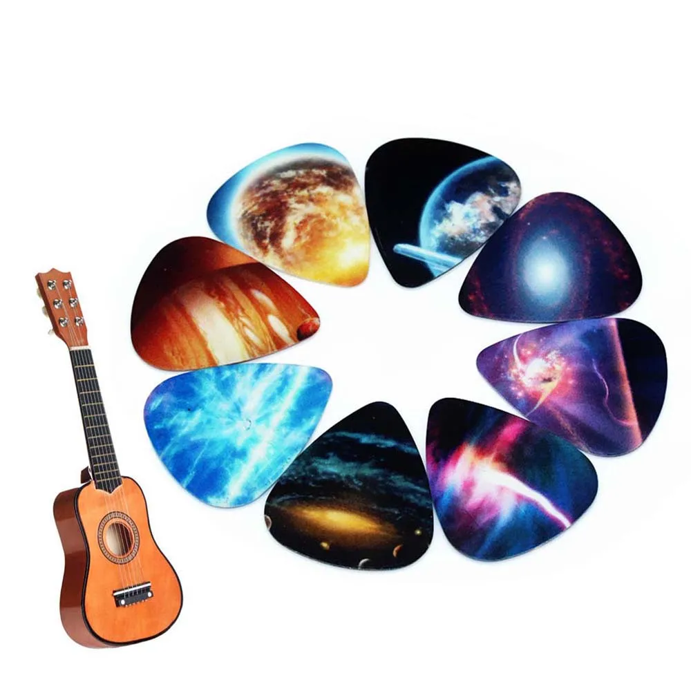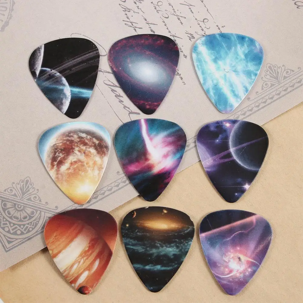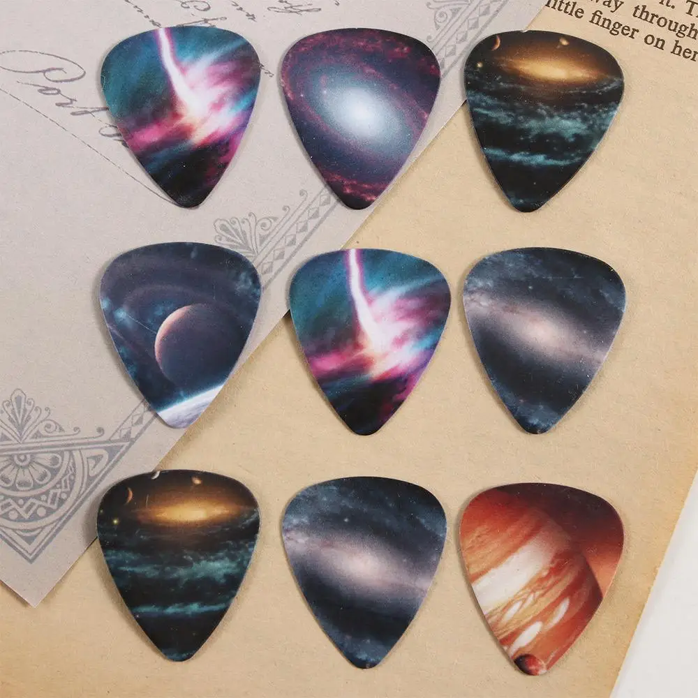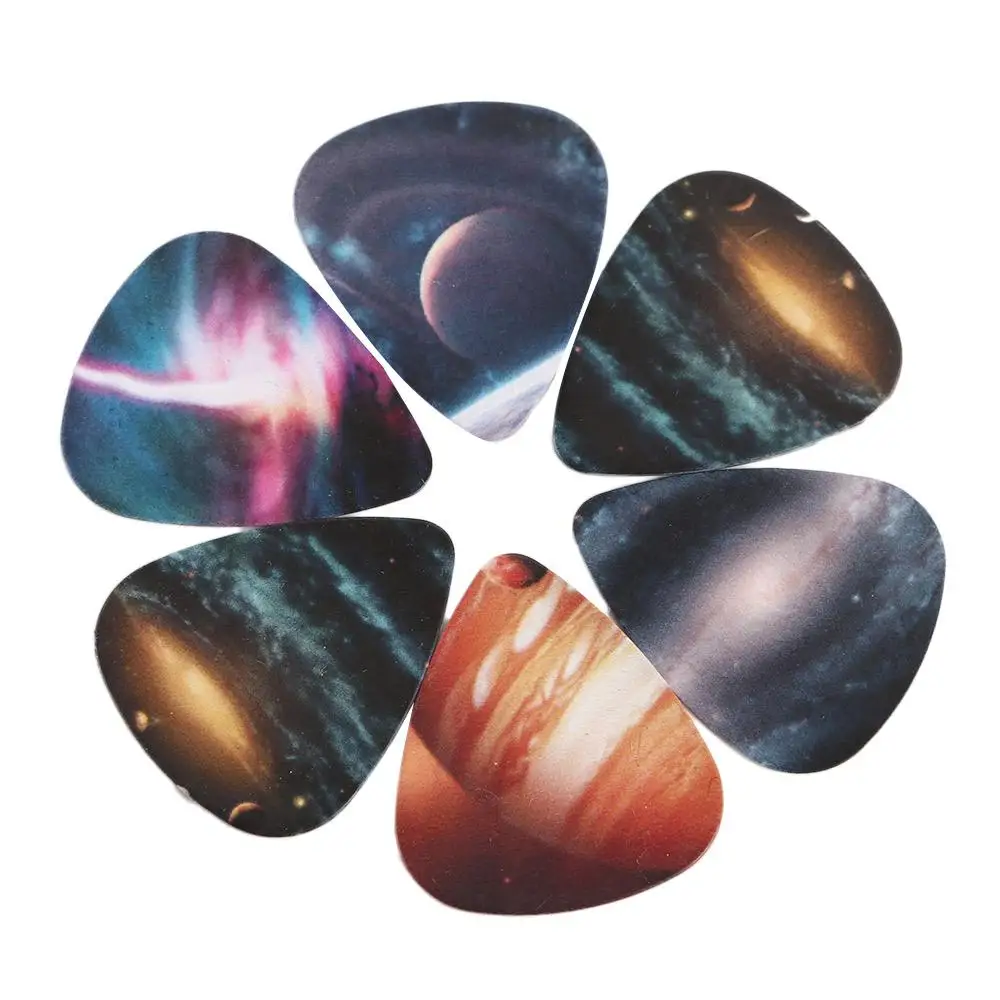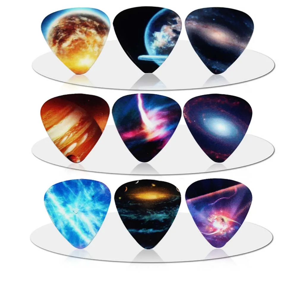 Tipo: púas de guitarra Cantidad: 10 piezas Forma: como en la imagen Color: colorido, enviado aleatoriamente Grosor: 0,46mm, 0,71mm, 1mm El paquete incluye: 10 unids/lote de púas de guitarra