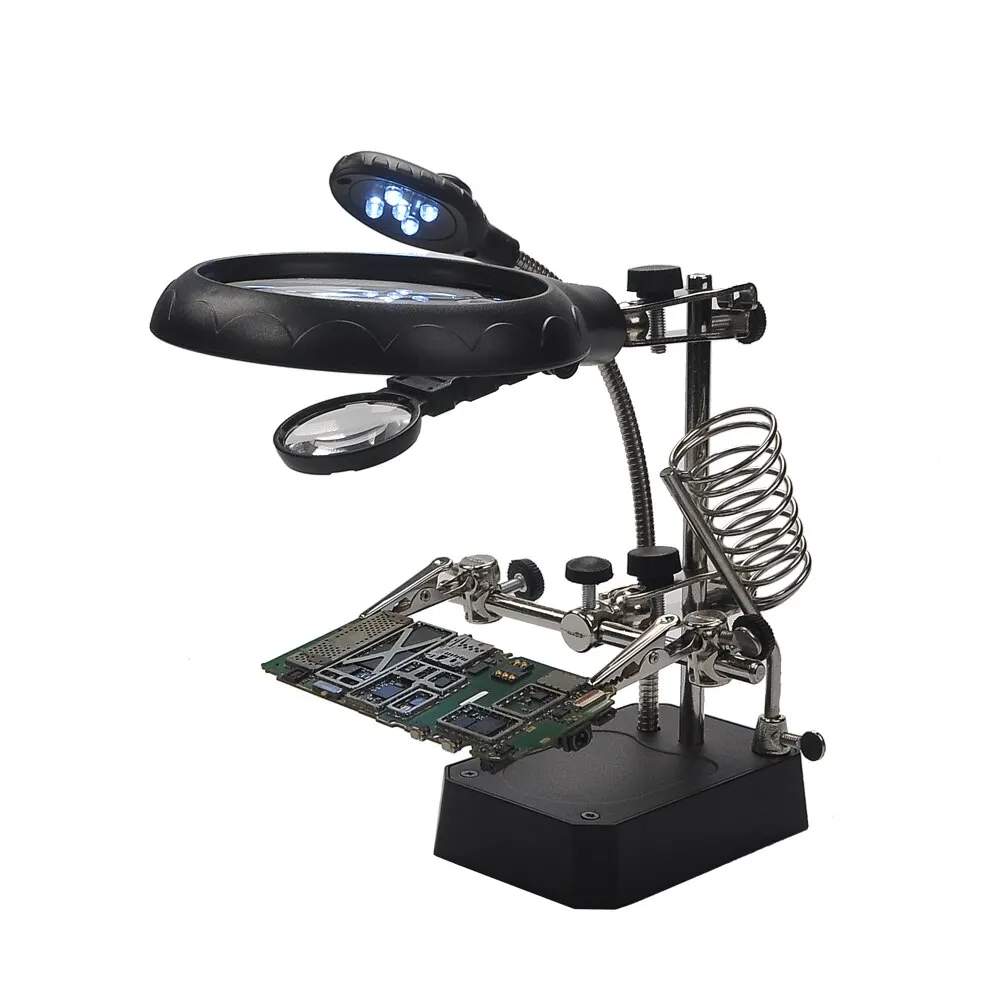 • Lámpara de escritorio de reparación :La lupa se puede utilizar como una lámpara de escritorio de reparación, proporcionando iluminación enfocada para pequeños trabajos de reparación o proyectos de bricolaje.