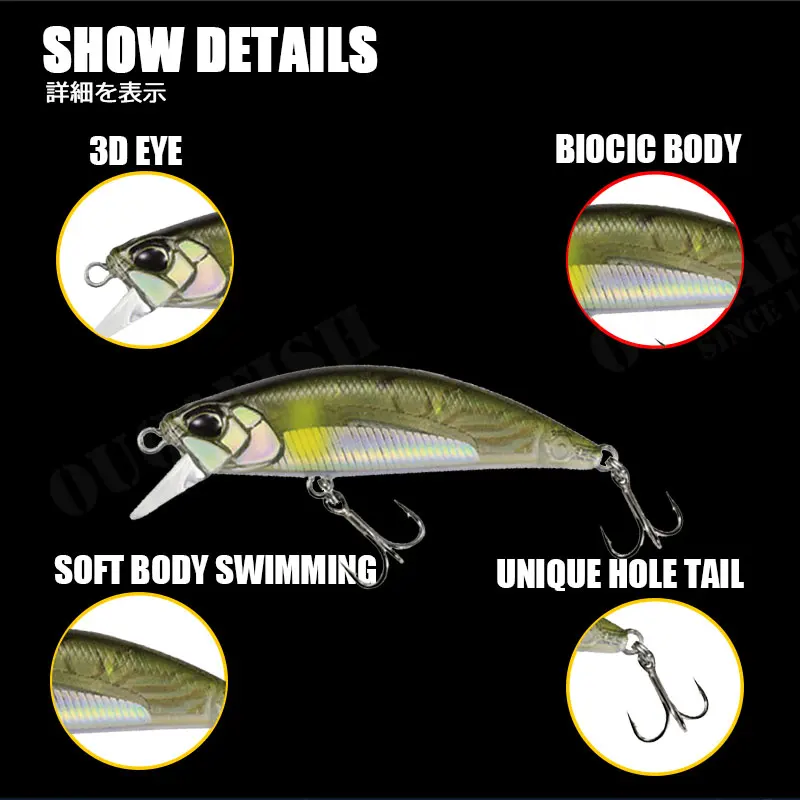Micro flotante Minnow señuelo De Pesca 50mm 4,5G Topwater Wobblers duro Isca cebos artificiales Accesorios De Pesca Blackfish Leurre