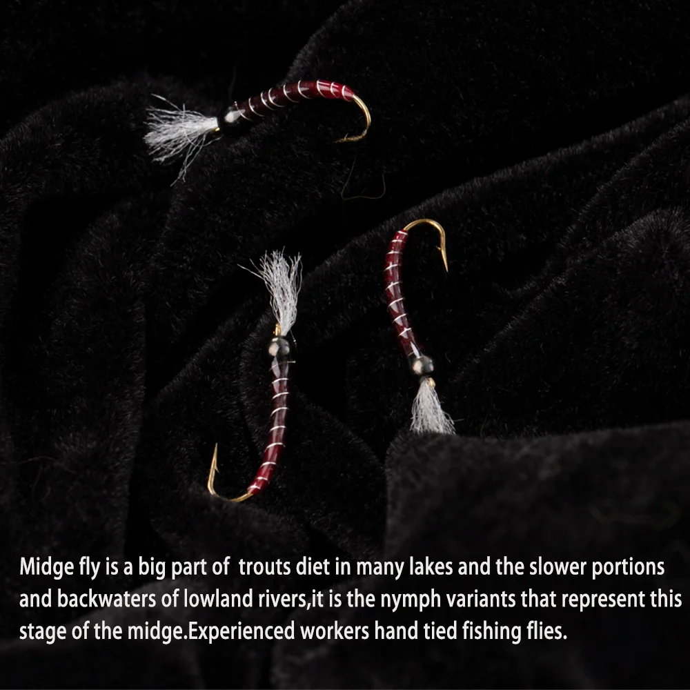 Midge Fly es una gran parte de la dieta de truchas en muchos lagos y las porciones más lentas y motas de los ríos de tierras bajas. Son las variantes de ninfa las que representan esta etapa de la midge. Trabajadores experimentados atados a mano para pescar moscas.