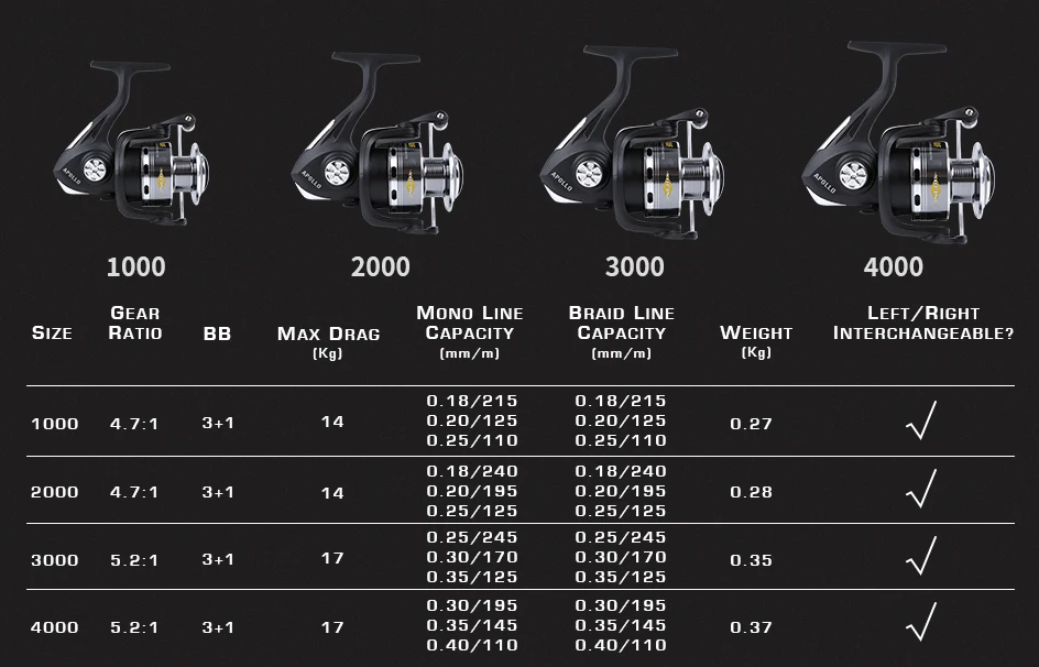 ● Hasta 17kg de arrastre máximo-El carrete giratorio MIFINE APOLLO es enérgico y potente. Fiable 17 kg de arrastre de lana de triple disco que le permite usar hilo de pescar ligero.