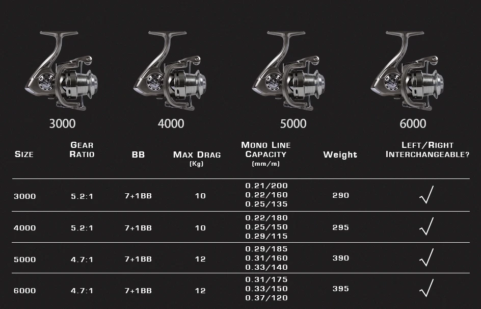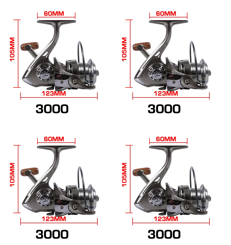 La diferencia de tamaño permite diferentes pruebas de libras y yardas para los carretes. Cuanto mayor sea el número, mayor será la prueba de libras que pueda poner en el carrete.