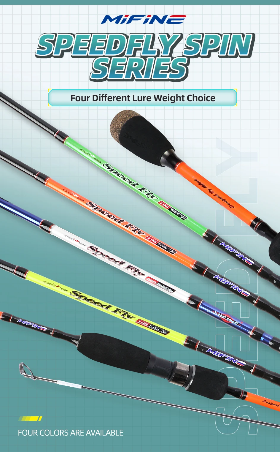 Speedfly Spin Series contiene cuatro cañas de pescar giratorias con diferentes pesos de lanzamiento. Speedfly Spin tiene el último diseño y la calidad superior, la tela de carbono de 24 toneladas puede aumentar la fuerza de rotura y elevación para garantizar la durabilidad general. Los anillos de guía K de acero inoxidable 304 antioxidantes y los anillos magnéticos LTS pueden proteger mejor las líneas de pesca y reducir la fricción.