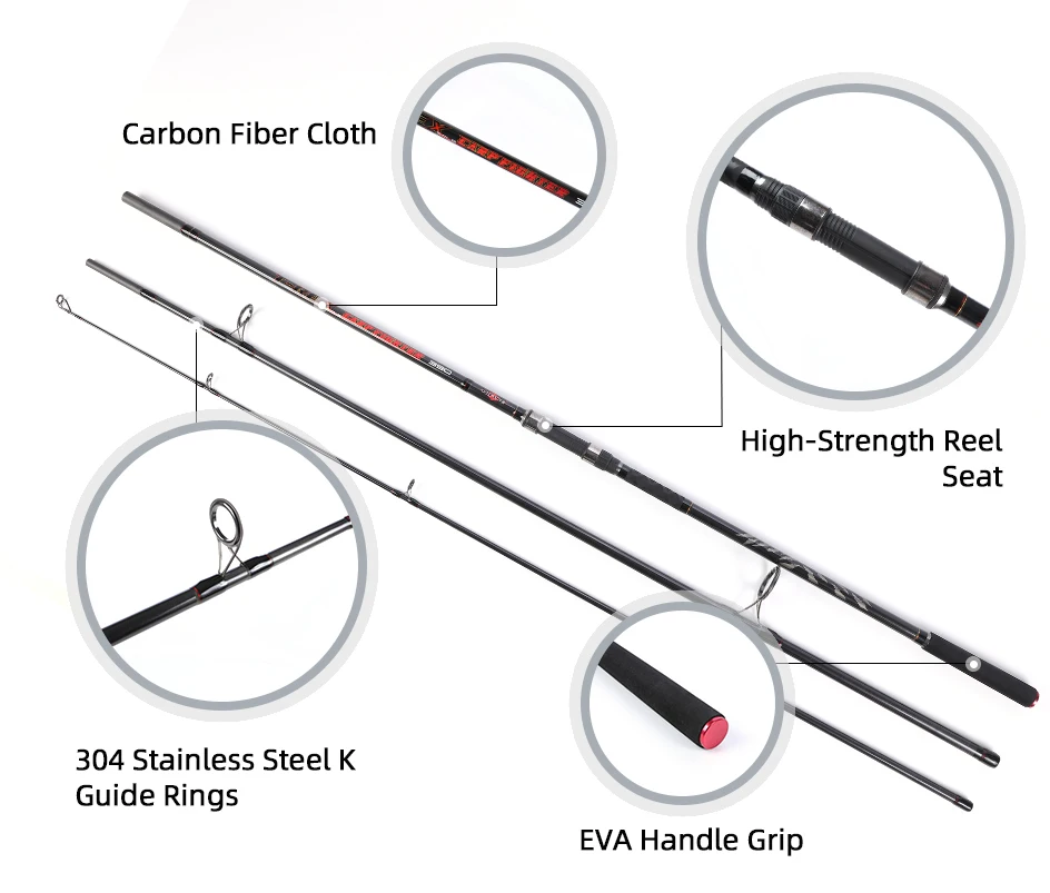 Una poderosa caña CARP FIGHTER es capaz de sostener peces fuertes, porque la carpa y la carpa a menudo intentan meterse en la hierba o se engancha y si logran hacerlo, es casi seguro que perderás tanto el trofeo como la cuerda.