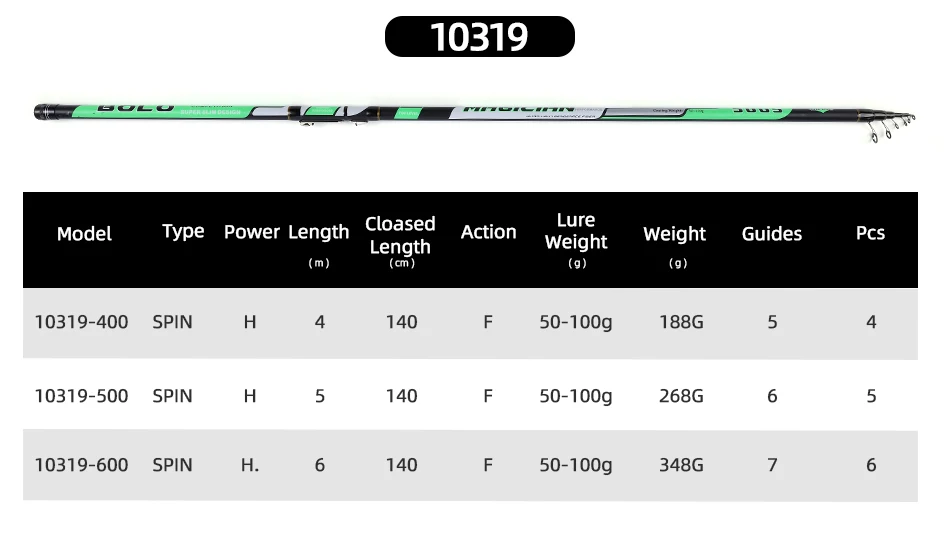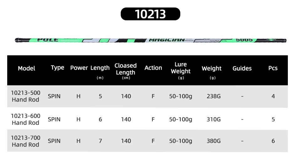 Caña de pescar telescópica de carbono MIFINE MAGICIAN 4M/5M/6M/7M señuelo WT 50-100/40-80/60-120g Spinning/poste de mano para corriente de agua dulce