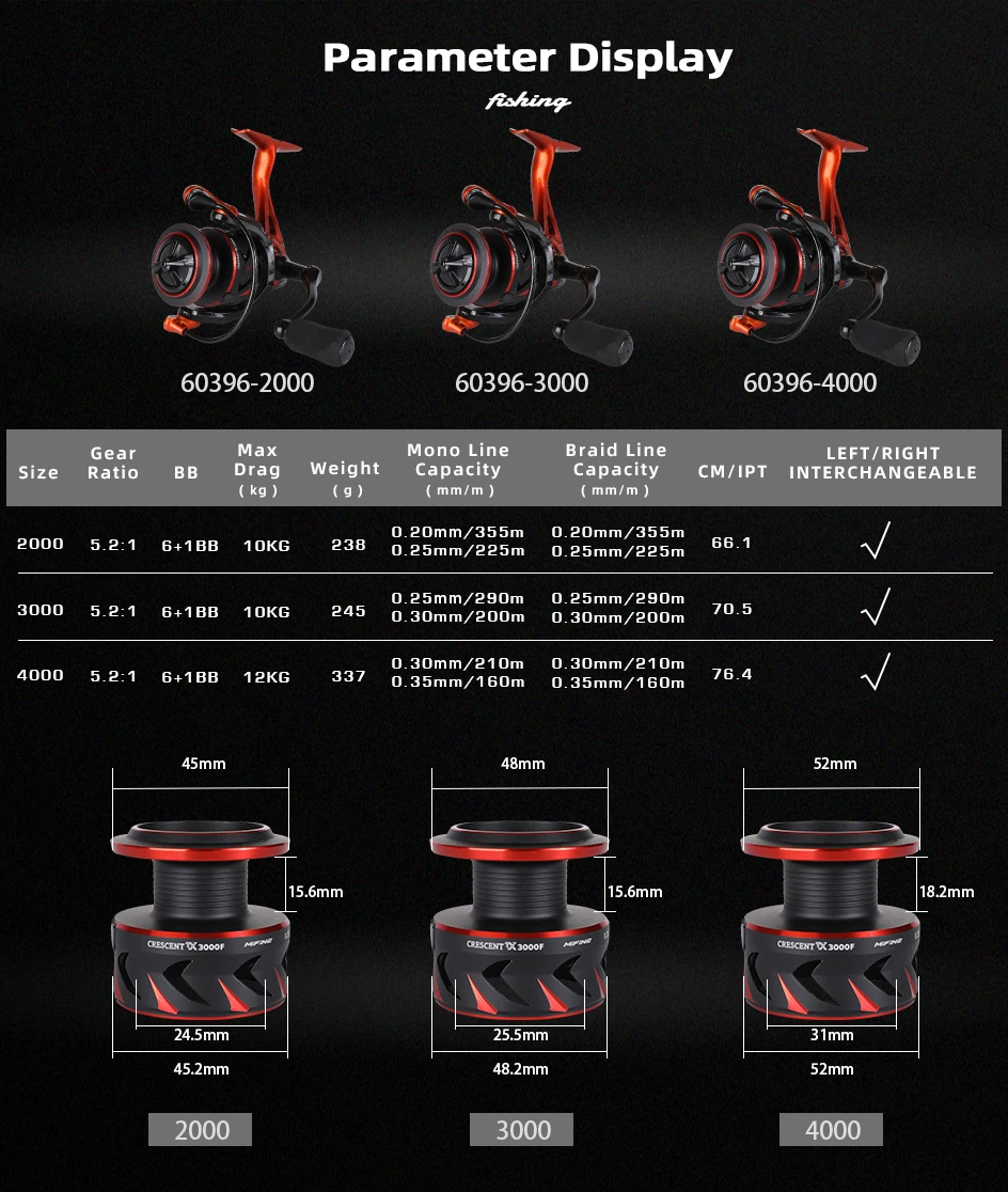 MIFINE CRESCENT XT carrete de pesca giratorio 2000-4000 12KG Max Drag 6 + 1BB Power Bass Pike pesca agua salada agua dulce 2023 más nuevo