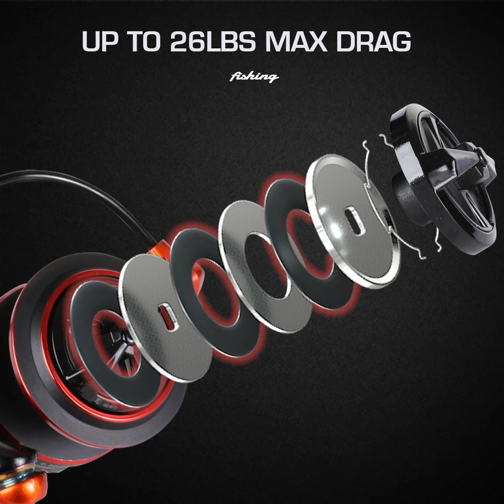 ● Potente Sistema de arrastre: arrastre máximo de 26 libras/12kg, el sistema de arrastre potente y fuerte ayuda a los pescadores a luchar con peces trofeo.