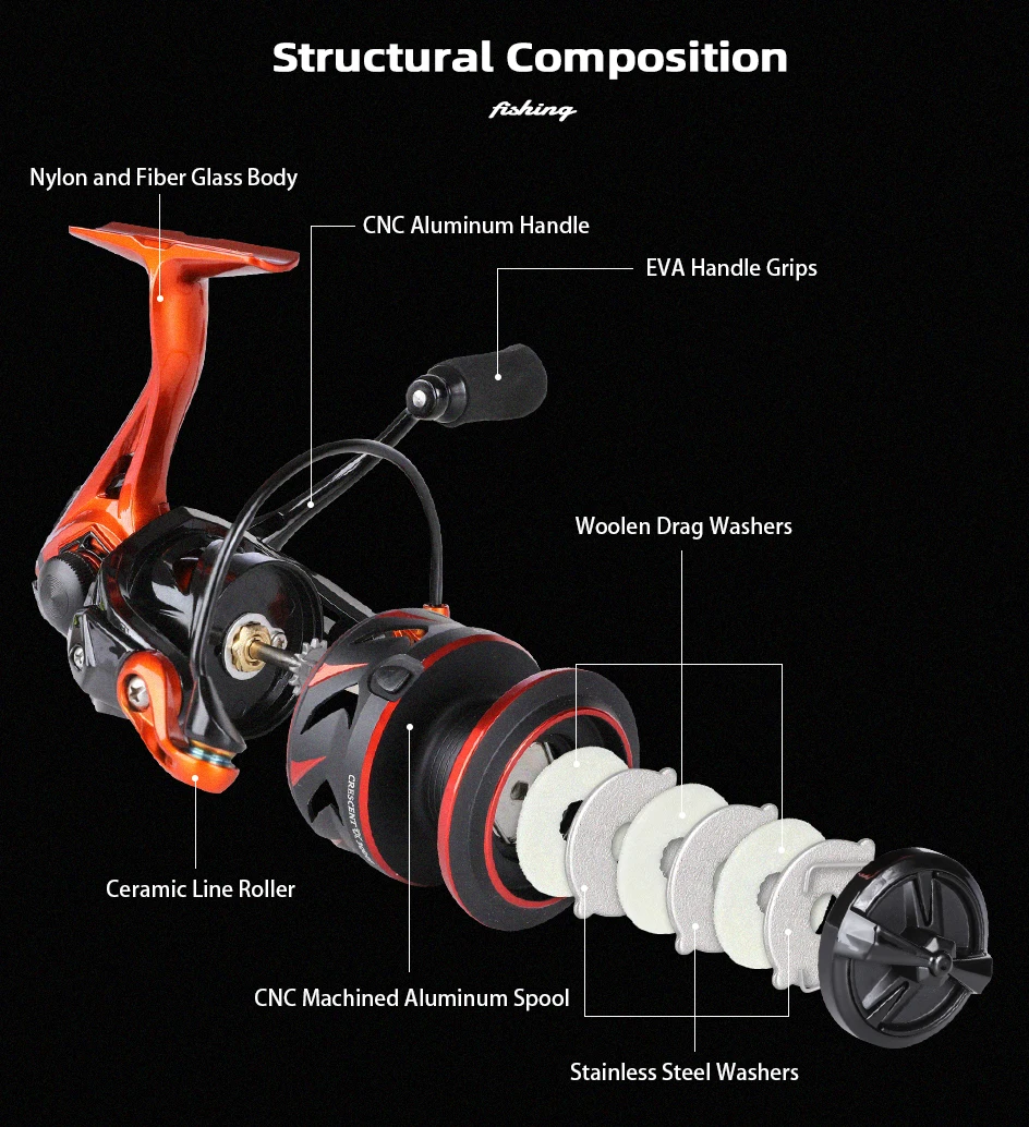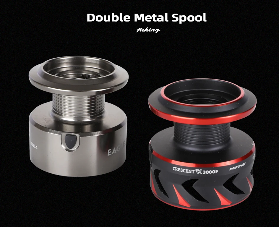 ● Carrete doble: admite más técnicas de pesca: con carretes dobles de aluminio, un carrete original poco profundo y un carrete de repuesto estándar, los pescadores pueden cambiar los carretes para diferentes técnicas de pesca.