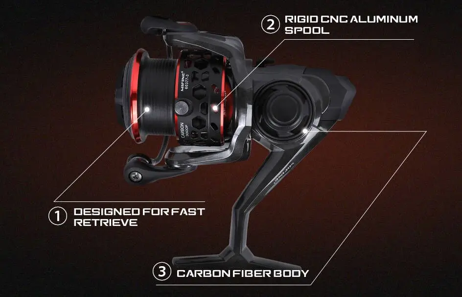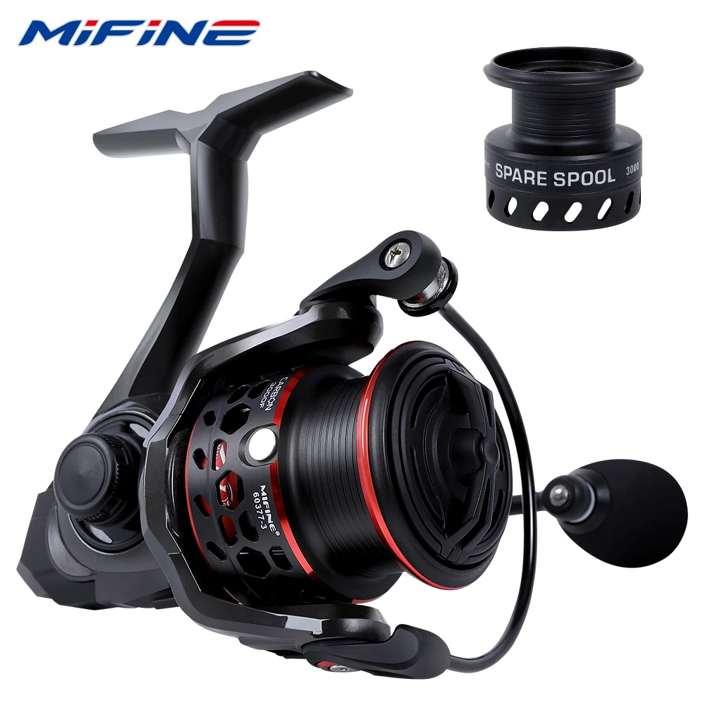 Carretes giratorios ultraligeros MIFINE CARBON con carrete de aluminio de repuesto, relación de engranaje 5,1: 1, rueda de pesca para agua salada y agua dulce