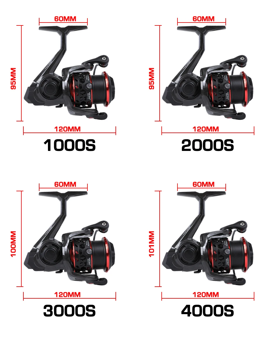 La diferencia de tamaño permite diferentes pruebas de libras y yardas para los carretes. Cuanto mayor sea el número, mayor será la prueba de libras que pueda poner en el carrete.