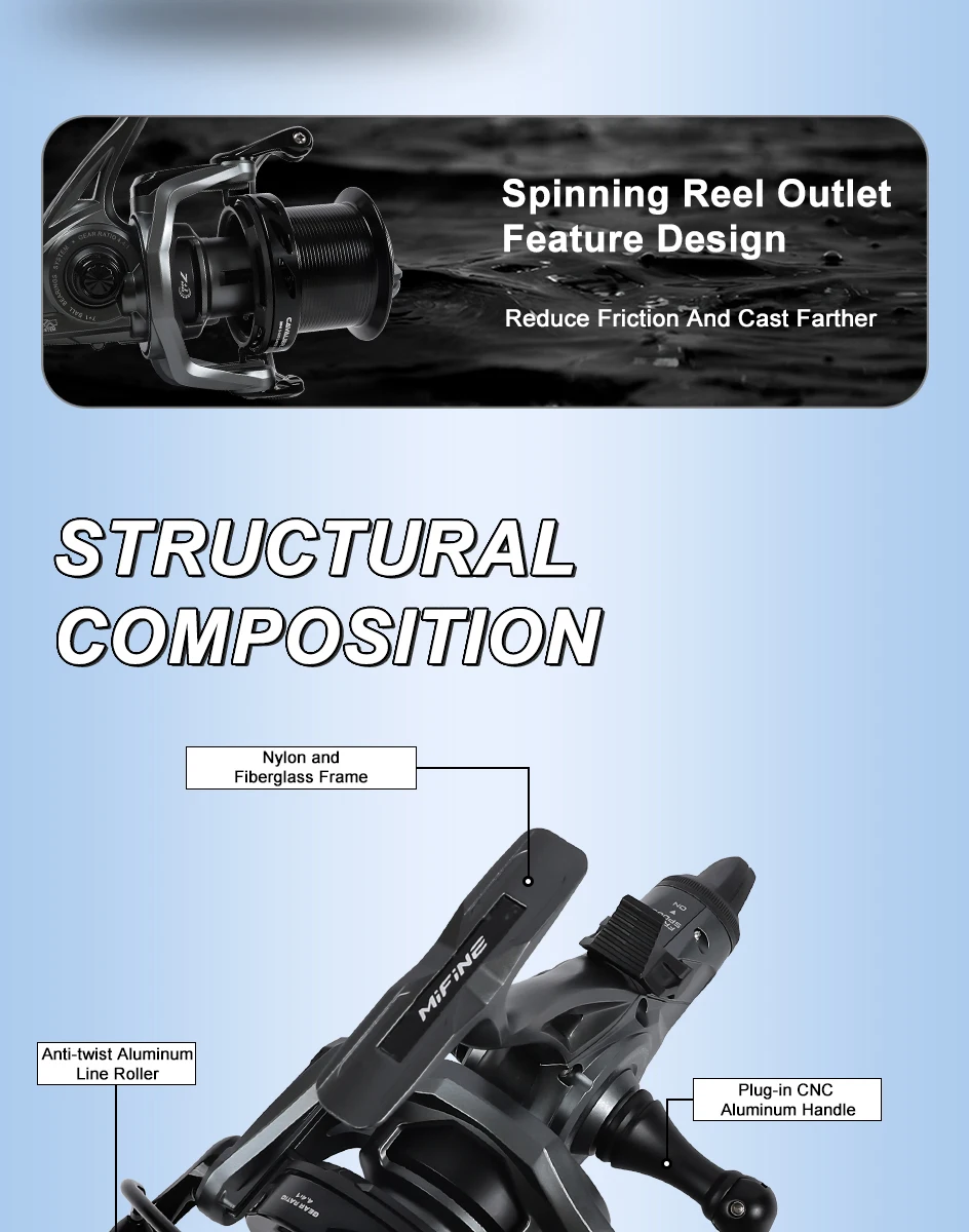 MIFINE CAVALIER CAPR BTR carretes giratorios 4,4:1 arrastre máximo 12KG 7 + 1BB tamaño 9000 ruedas de pesca de agua dulce salada carrete alimentador de carpa