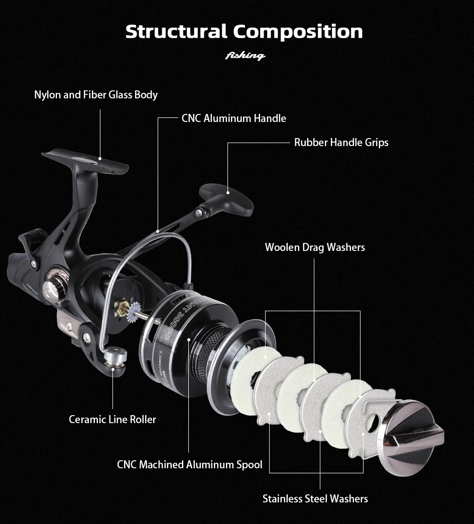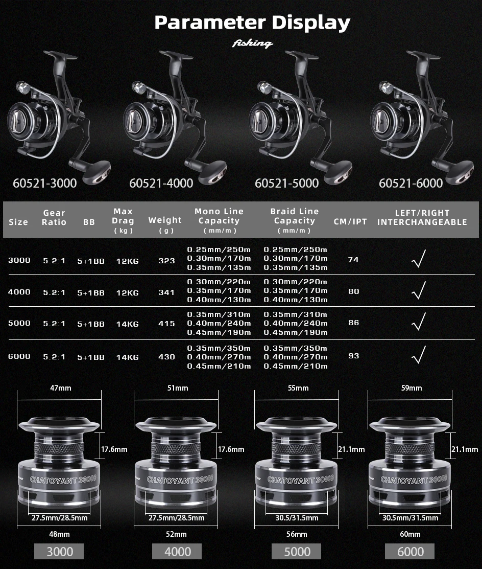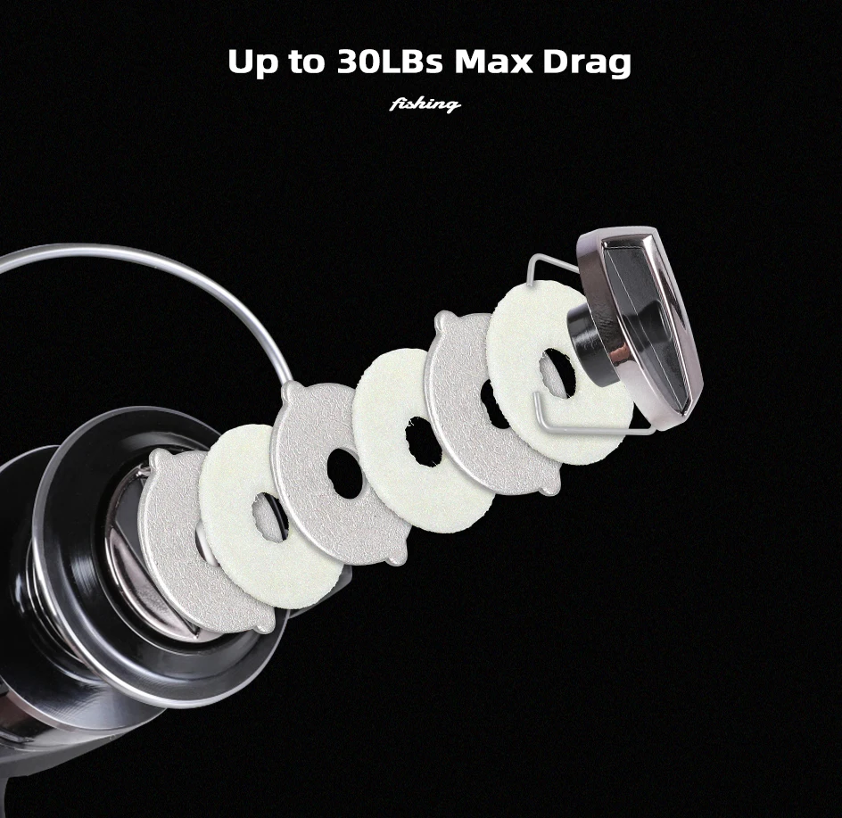 ● Sistema de frenos delantero y trasero: sistema de frenos delantero y trasero con una potencia de frenado de hasta 14kg que permite a los pescadores luchar con peces trofeo. Los pescadores pueden ajustar la fuerza de frenado en consecuencia para las necesidades reales de pesca.