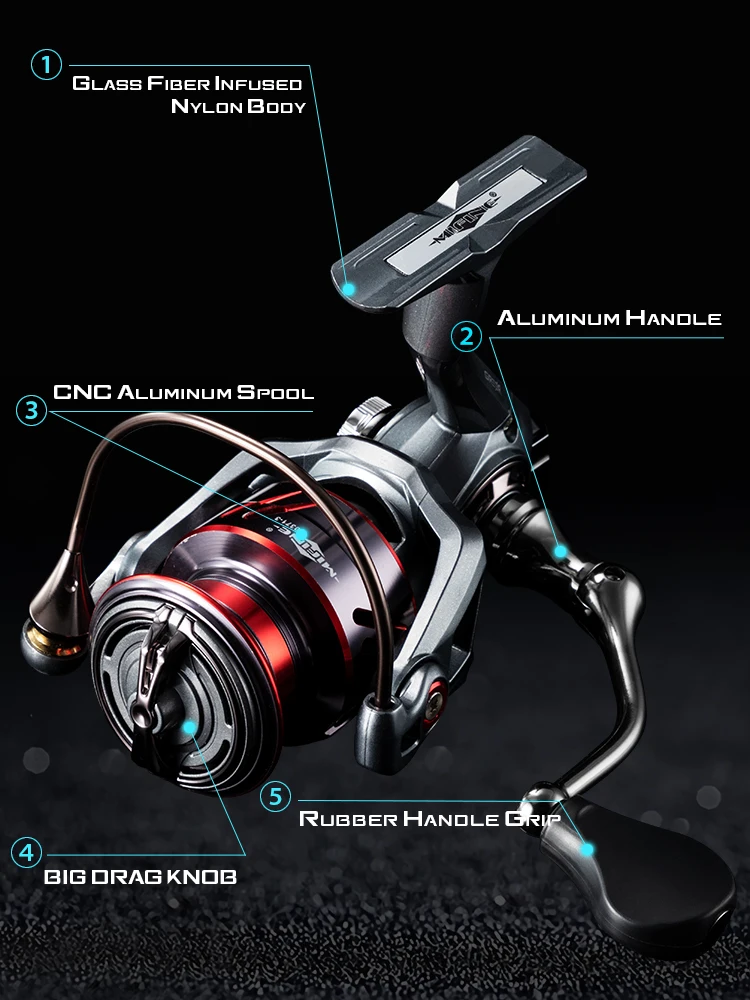 ● CARACTERÍSTICAS ÚNICAS-Mifine Greek le ofrece el último diseño y aspecto elegante. Carretes más profundos para una mayor capacidad de línea. La fibra de vidrio y el marco de nailon reducen el peso del carrete al tiempo que aumentan la resistencia general. El mango de aluminio mecanizado CNC y la perilla de alta densidad te hacen sentir cómodo controlándolo incluso en las condiciones más húmedas.