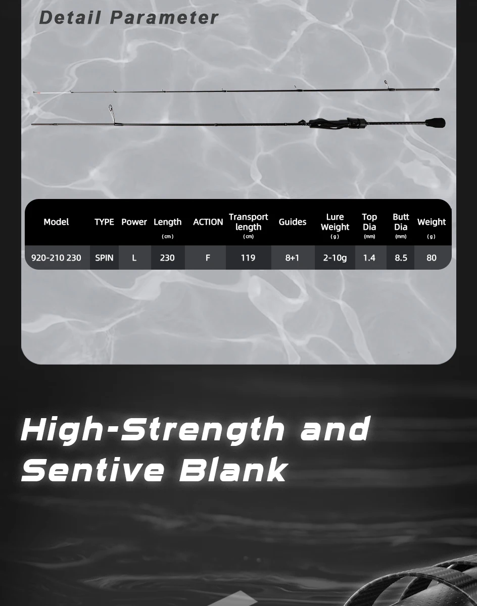 Caña de alta calidad con acción extra rápida.
