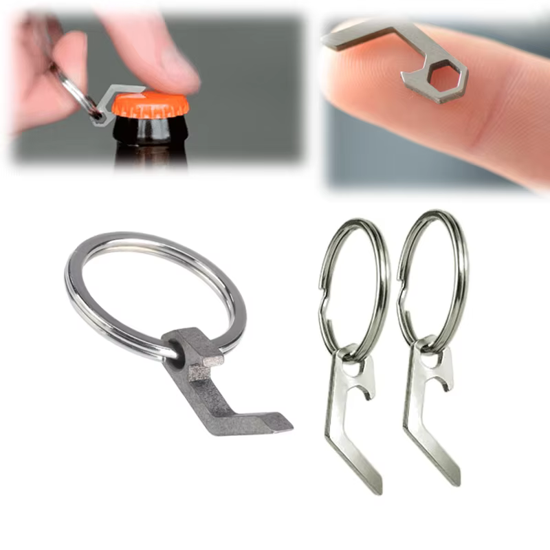 Mini abridor de botellas de cerveza ligero, llavero antipérdida, herramienta de bolsillo, dispositivo de utilidad de acero inoxidable para acampar al aire libre y caminata, 1 ud.