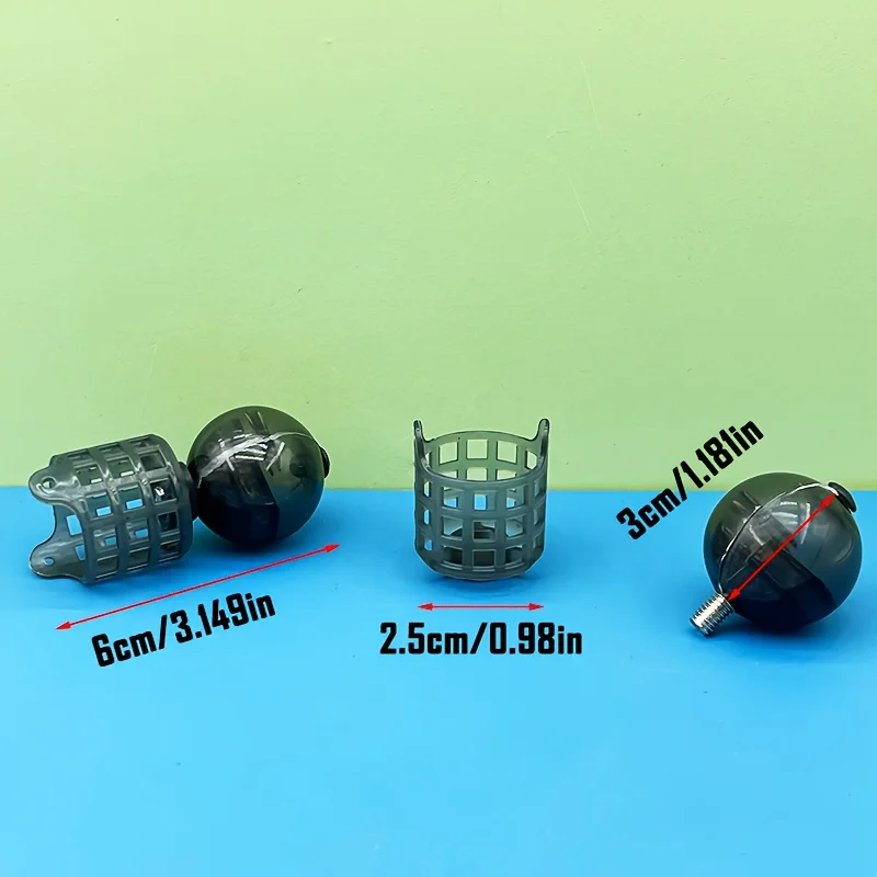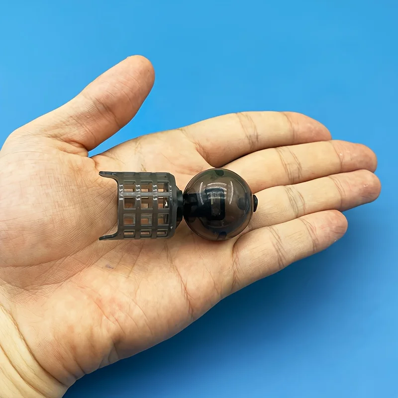 Mini alimentador de cebo europeo con tapa automática y bola flotante, diseño extraíble antienganches para pesca en lago/pesca salvaje, 6cm/3,149 pulgadas de diámetro