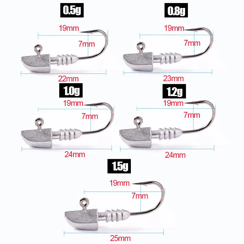 【Sujeta de forma segura el cebo de plástico】: La forma cónica del cebo está diseñada para sujetar el cebo de plástico de forma segura en su lugar, evitando que se resbale o se salga del anzuelo.