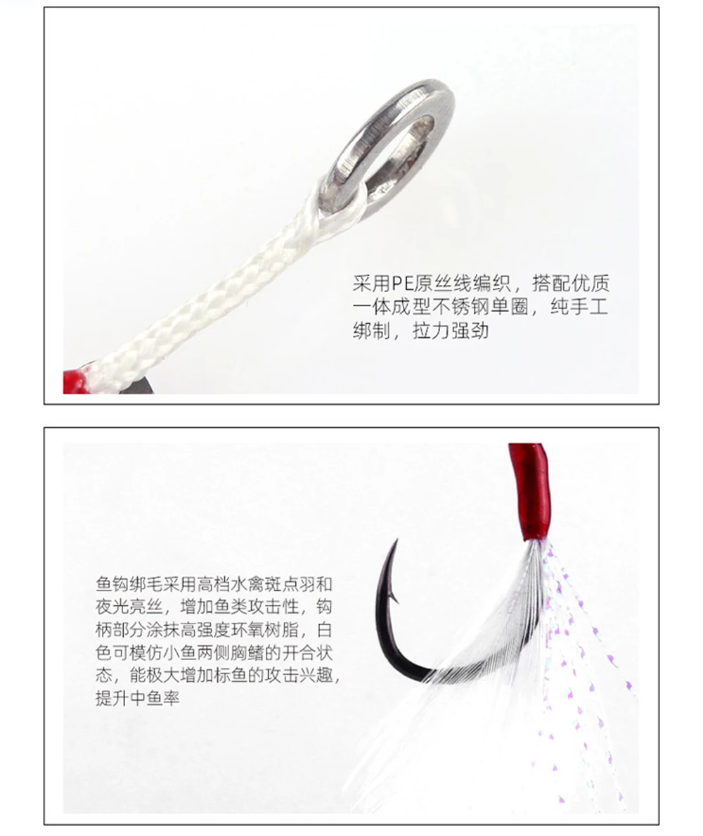 Mini anzuelos de asistencia JIG de acero al carbono Premium 8001 originales con plumas para perca de trucha anzuelo de pesca de mar 4 unids/pack
