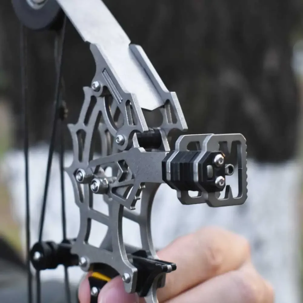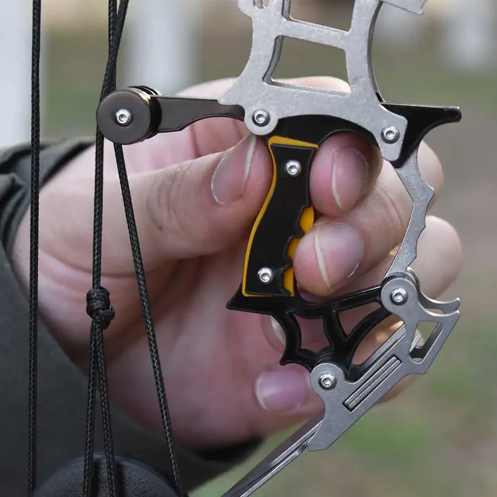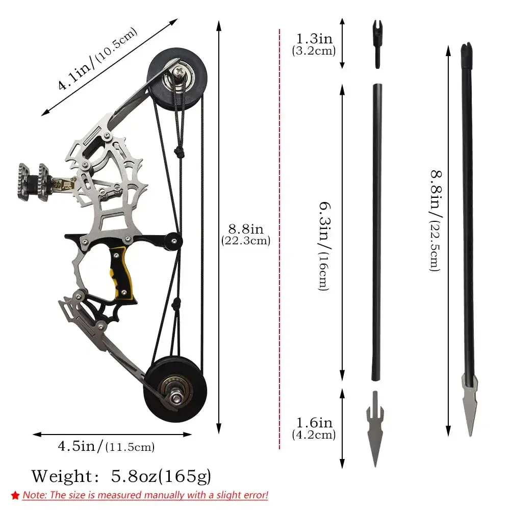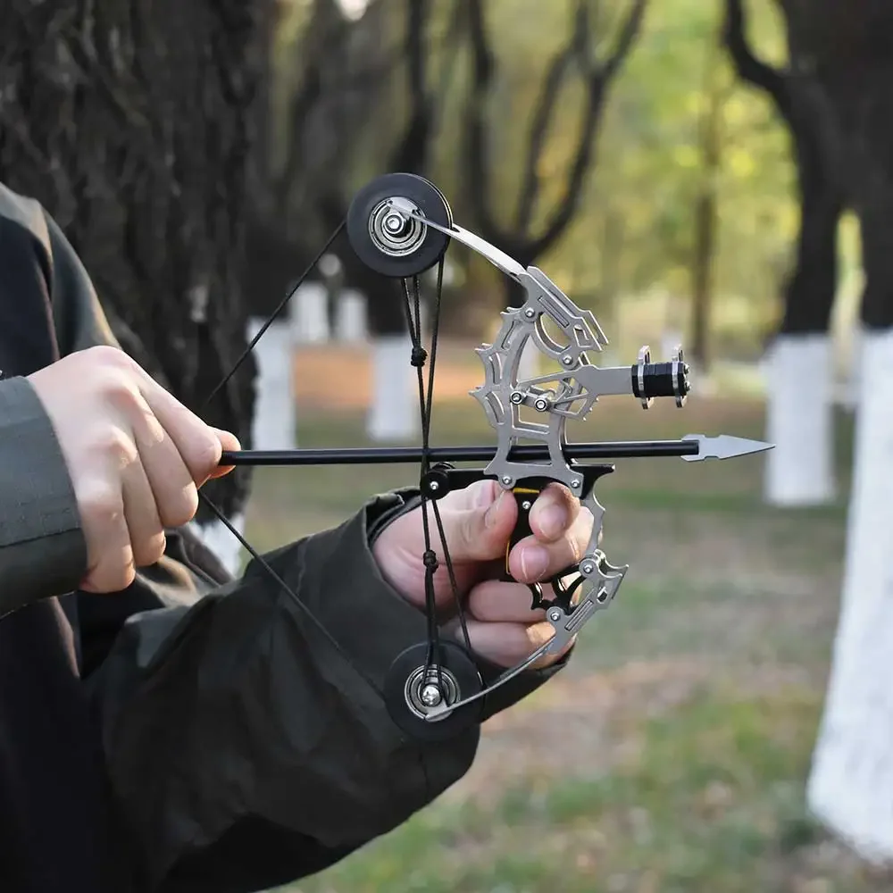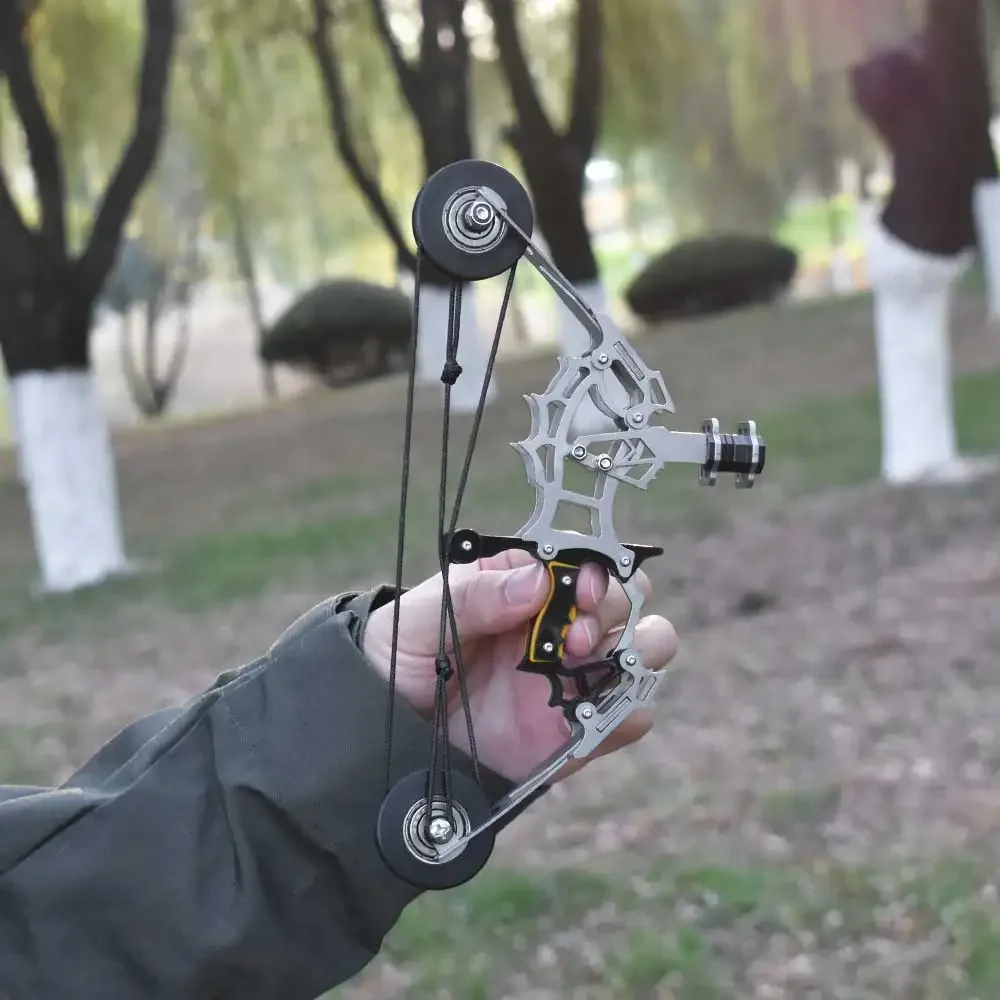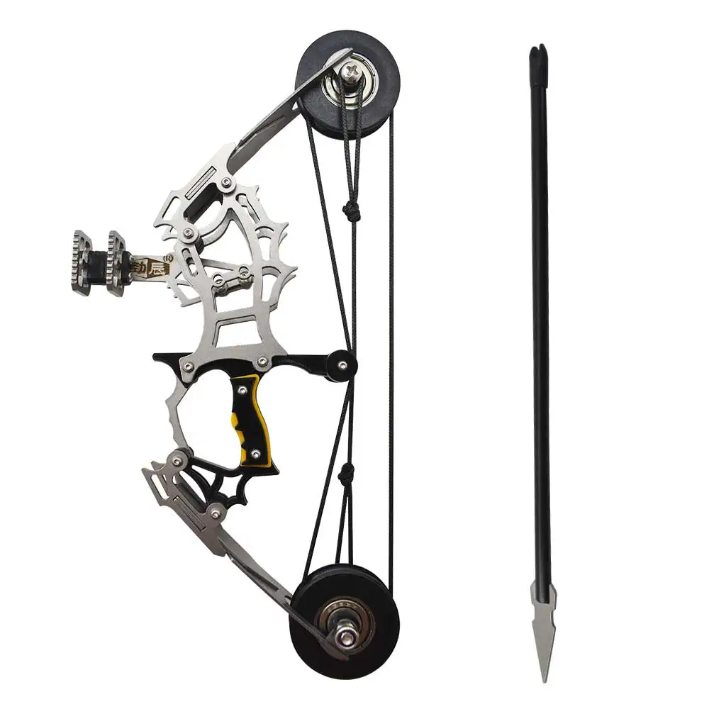 Mini arco compuesto de Metal, polea compuesta plateada, arco y flecha portátil, juguete de entretenimiento para caza al aire libre