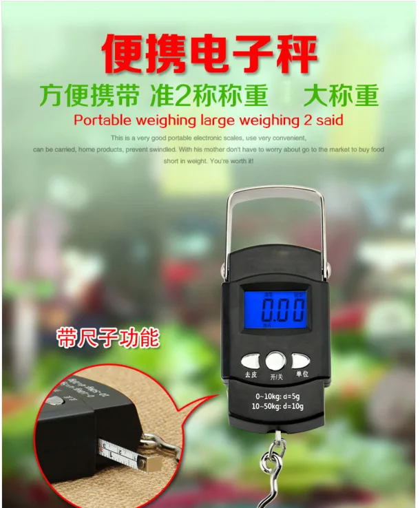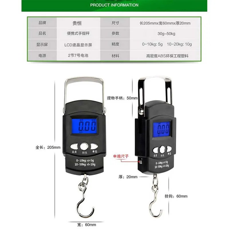 Mini báscula Digital de 50kg/10g, báscula de viaje para equipaje de pesca, báscula de gancho electrónica colgante, herramienta de pesaje de cocina