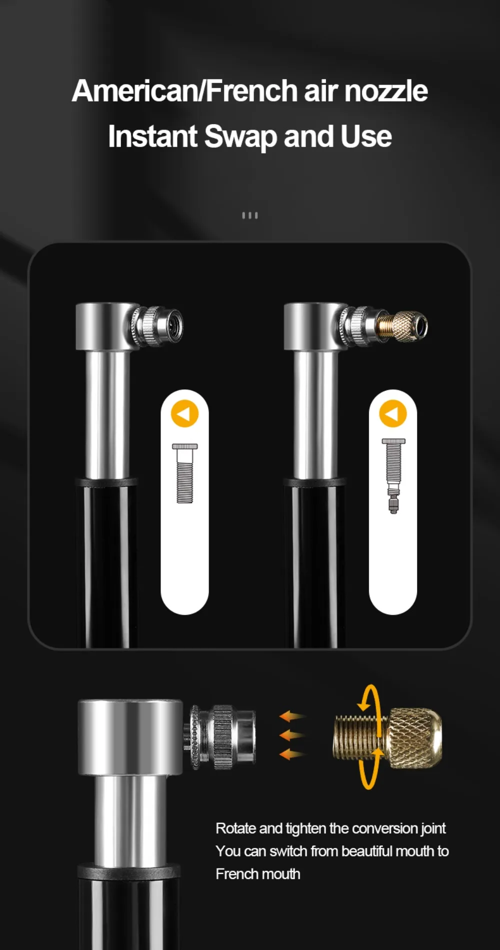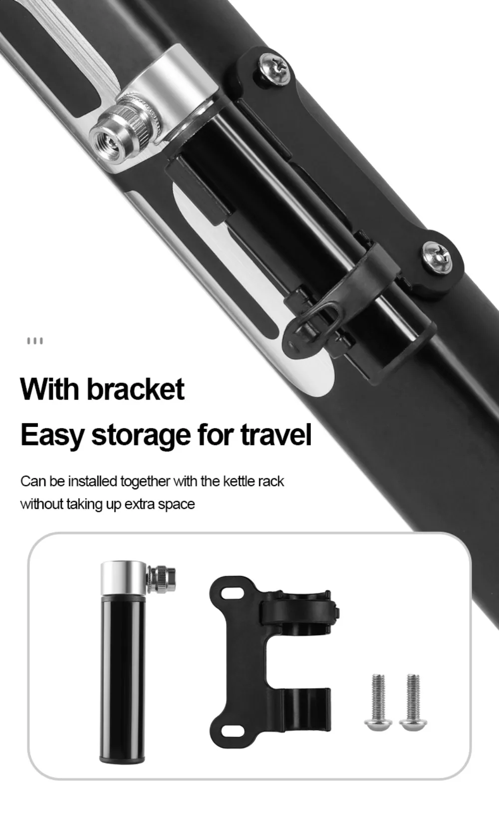 Brand new and high quality Size: As shown Material: Aluminum Alloy Color: Black,Silver Type: Bike Pump Package Including: 1*Bike Pump Note: 1. Due to the light and monitors effect, colors may have lightly difference. 2. Please allow slightly size errors due to manual measurement. Thank you for your understand!