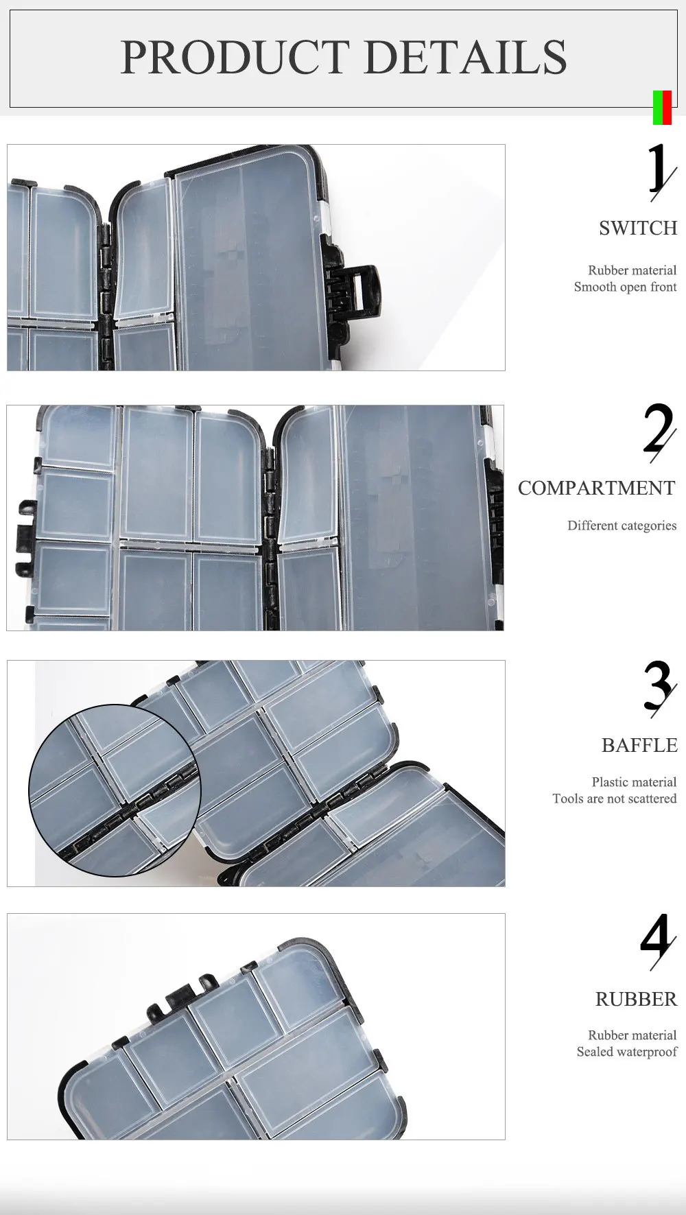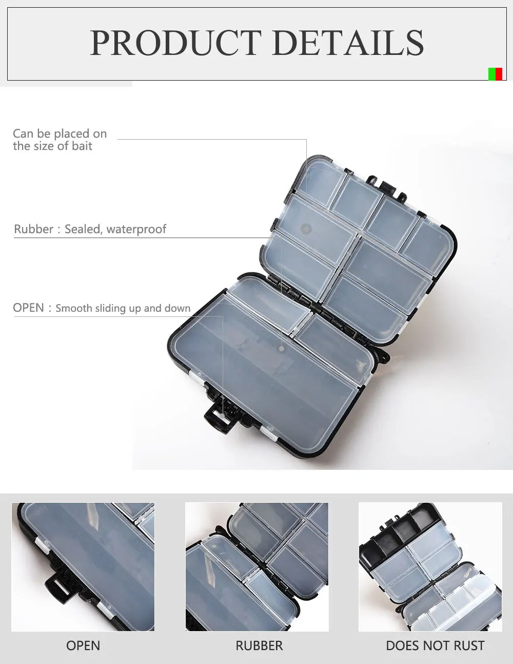 Mini caja de aparejos de Pesca con 10 compartimentos, señuelos, anzuelos, soporte de almacenamiento de plástico, caja cuadrada, accesorios de Pesca
