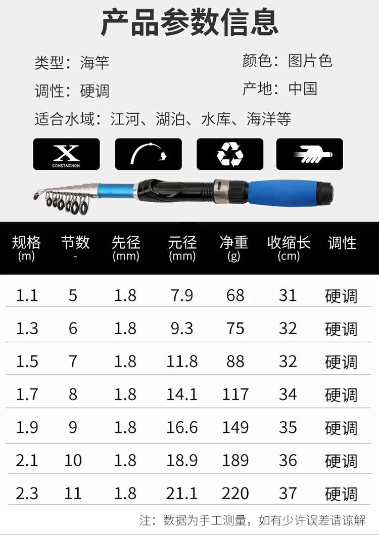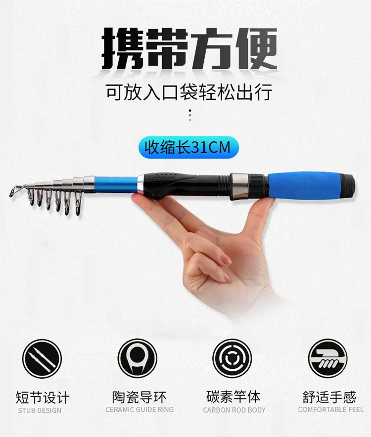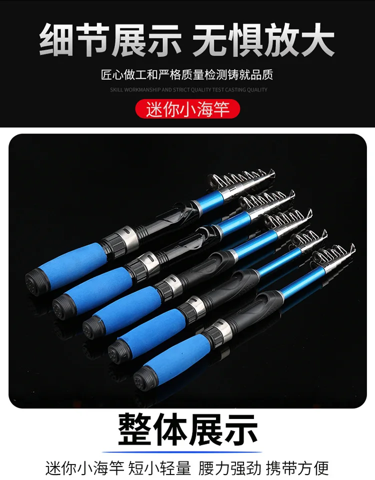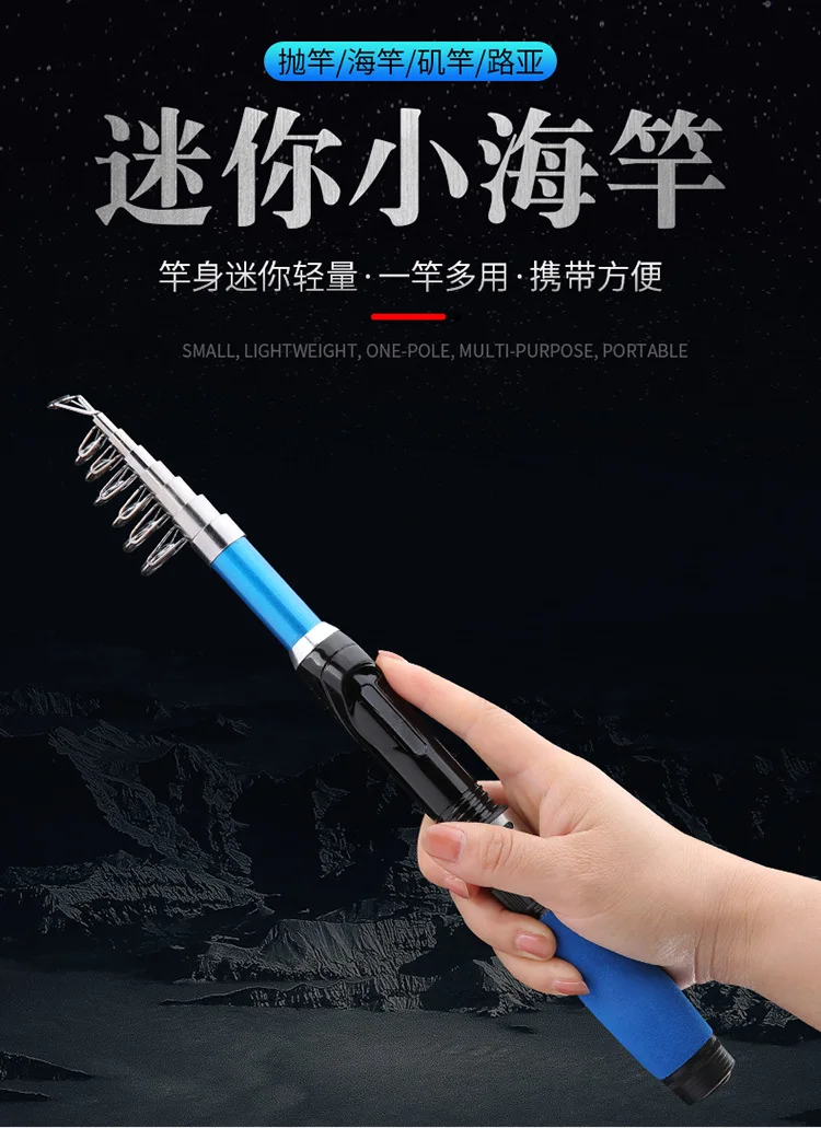Mini caña de mar portátil, caña de pescar superdura, telescópica, ultraligera, equipo de pesca, 1 ud.