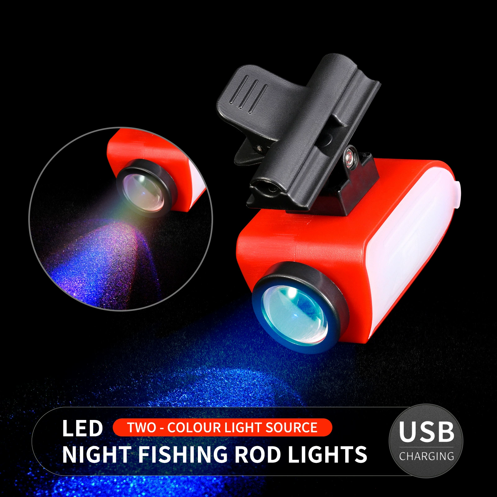 Mini caña de pescar LED, linterna, Luz Súper brillante, luz de bolsillo para acampar de emergencia al aire libre con abrazadera, accesorios de pesca nocturna