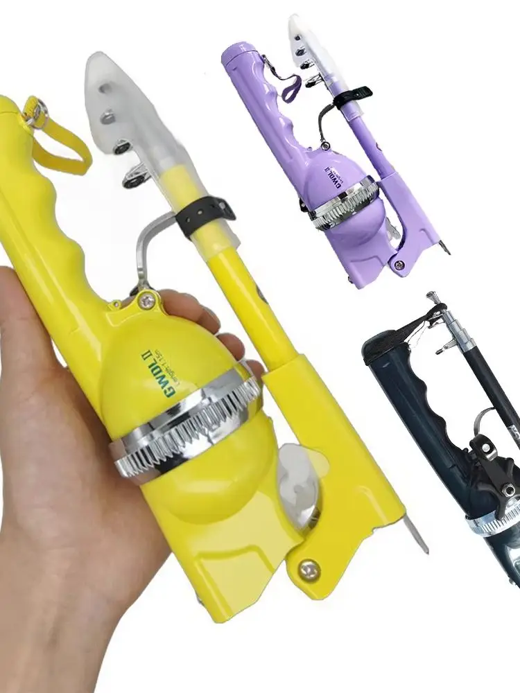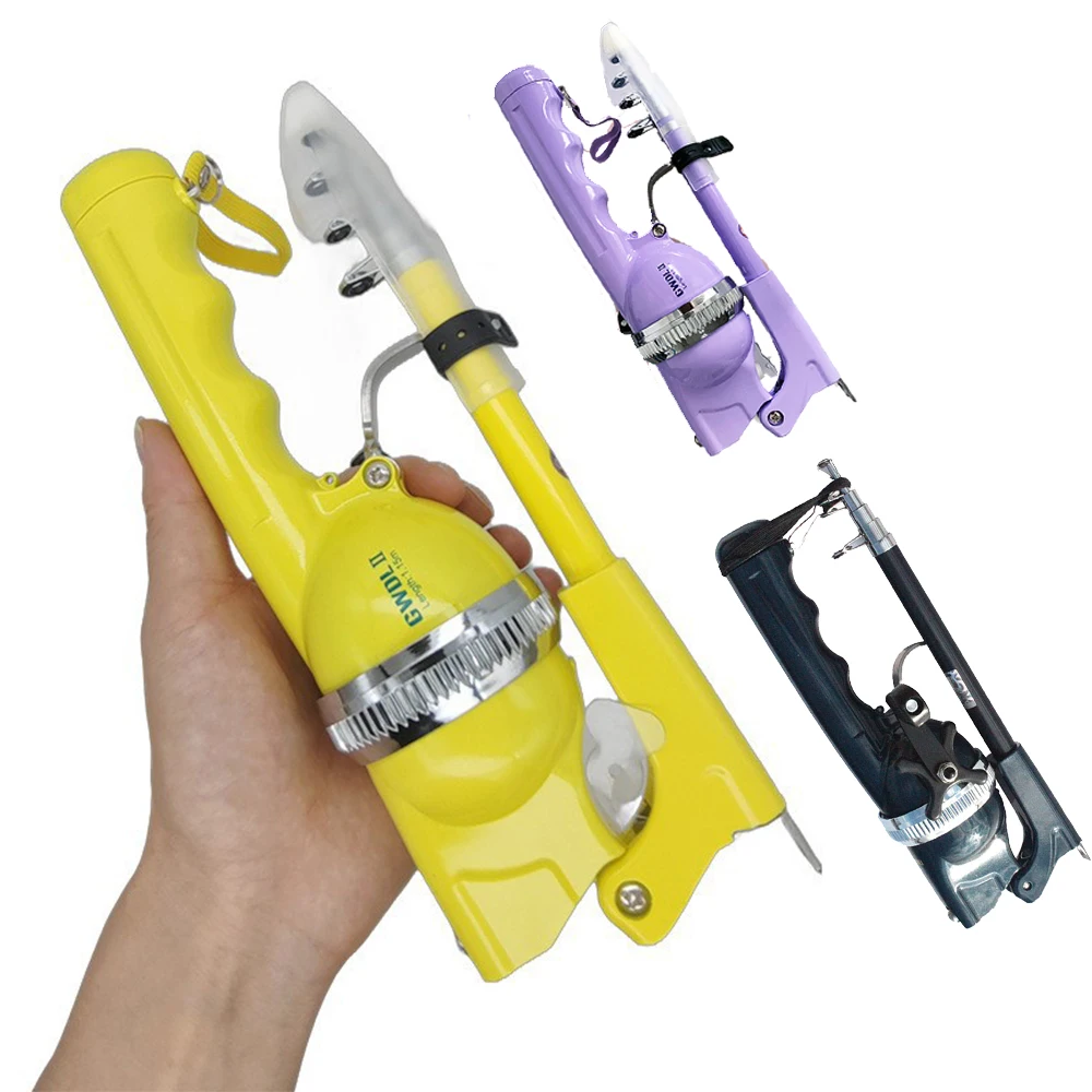 Mini caña de pescar plegable portátil, postes telescópicos con línea de carrete, cañas de viaje para peces, caña giratoria plegable, juego de carretes de pesca