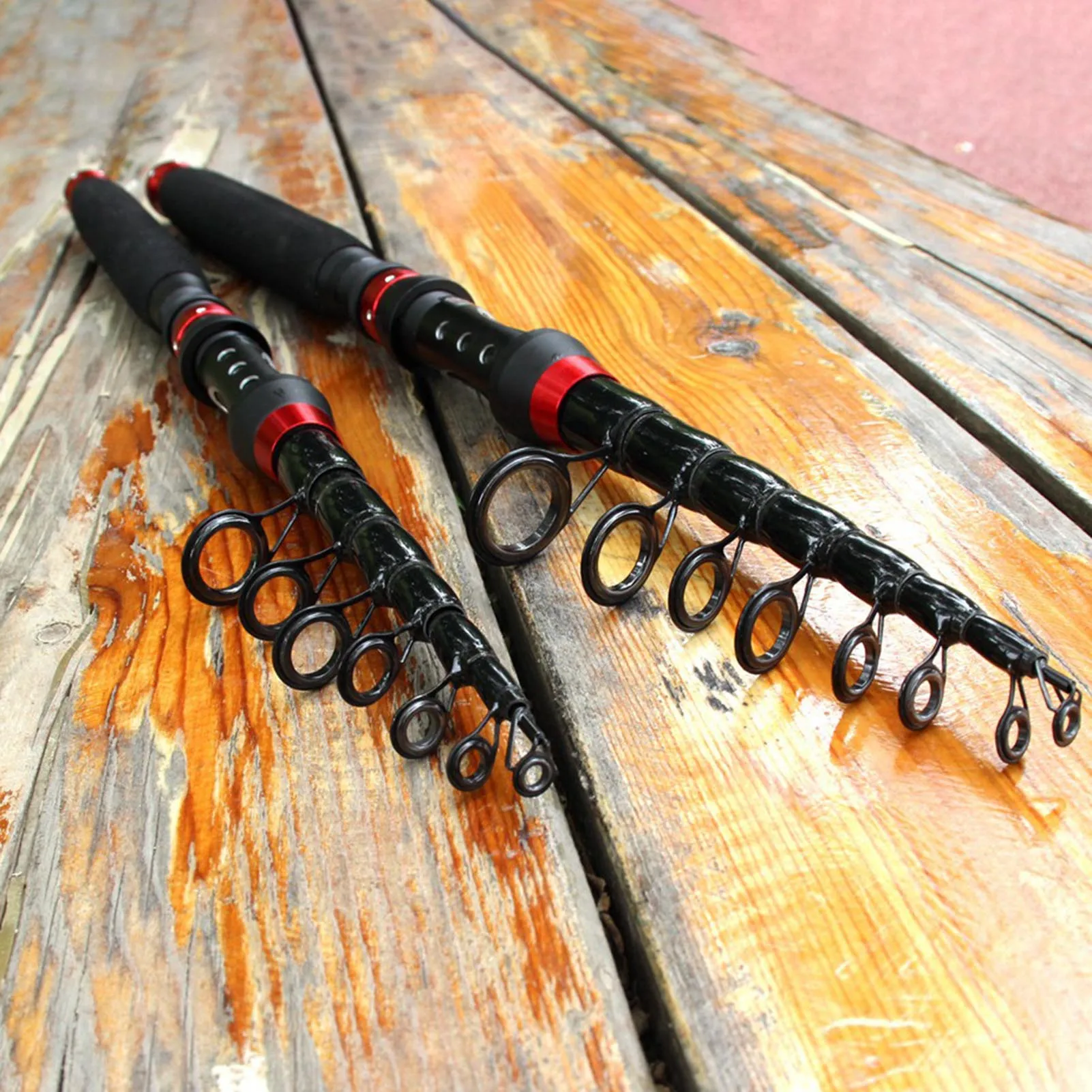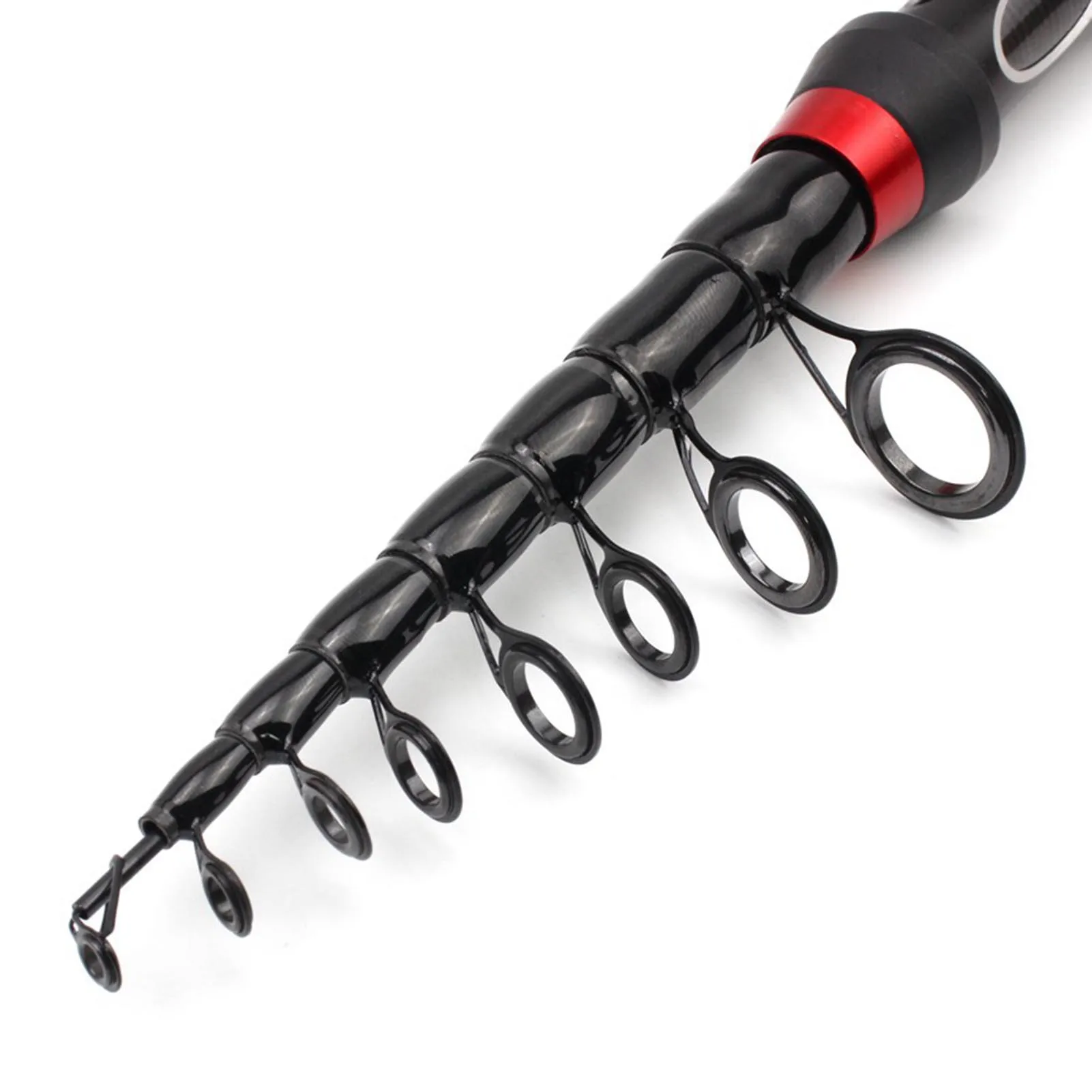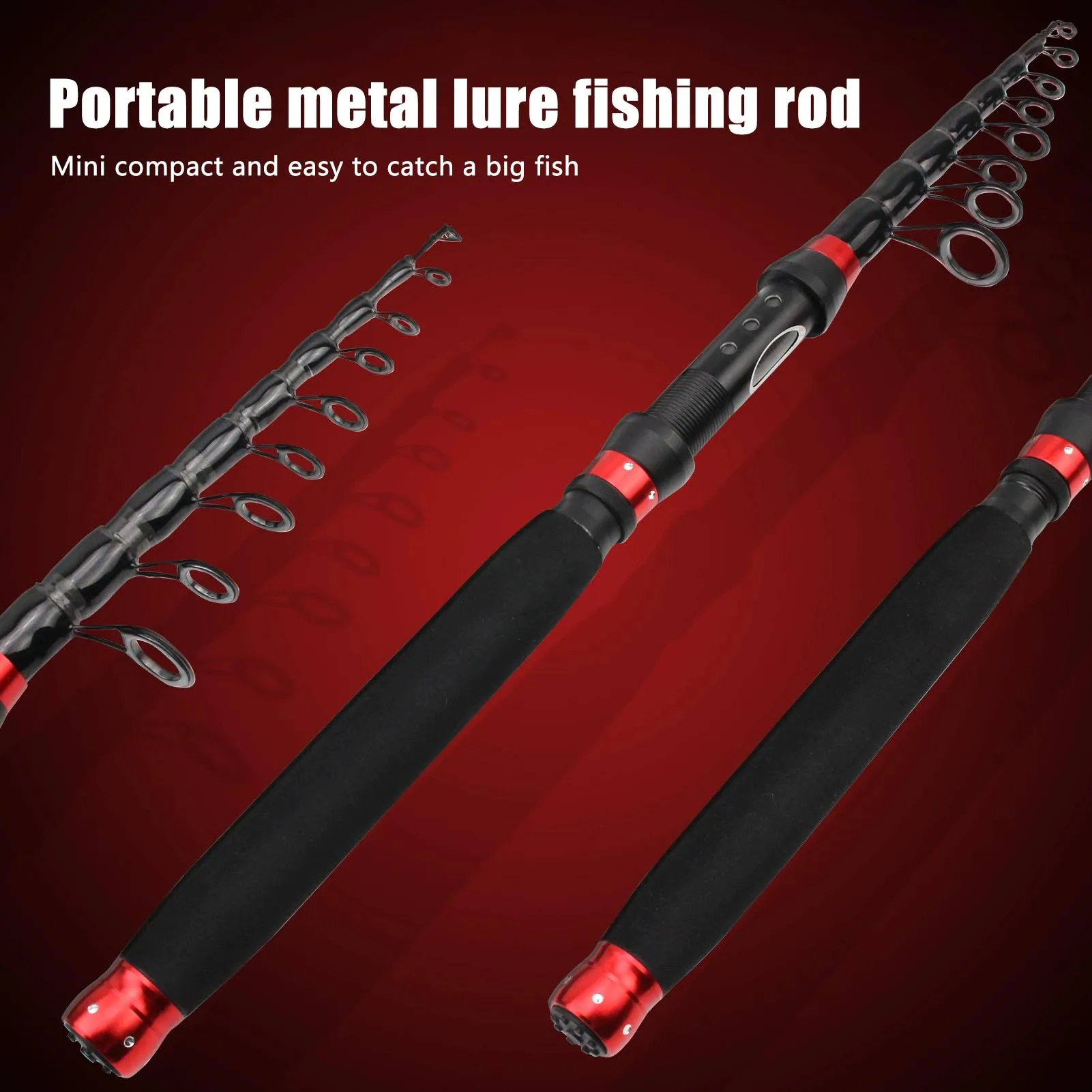 Mini caña de pescar telescópica: esta caña de pescar telescópica ultracorta está diseñada para facilitar el transporte, lo que la convierte en el compañero perfecto para cualquier pescador en movimiento.