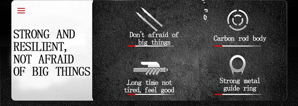 1. No tengas miedo a las cosas grandes 2. Cuerpo de la varilla de carbono 3. Mucho tiempo no cansado, siéntete bien 4. Anillo guía de metal fuerte
