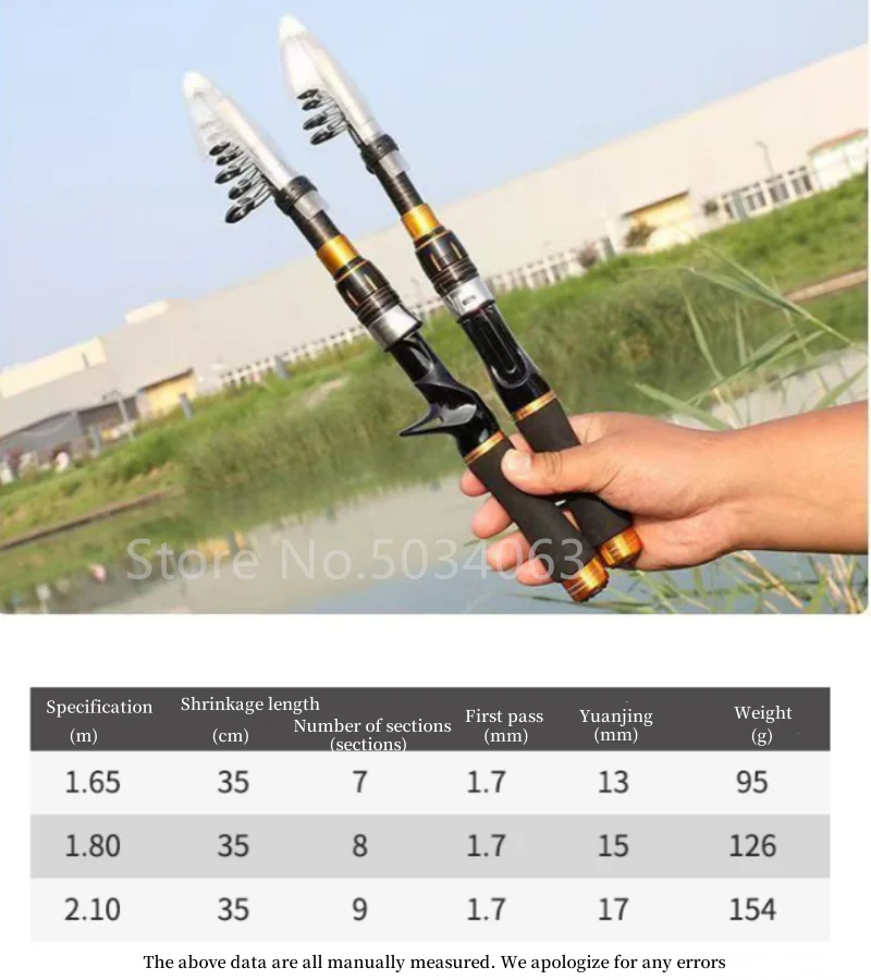 Mini carrete de caña de pescar telescópico, caña de pescar de carbono de 1,6 M, 1,8 M y 2.1 M para combinación, accesorios de pesca perfectos y ligeros portátiles
