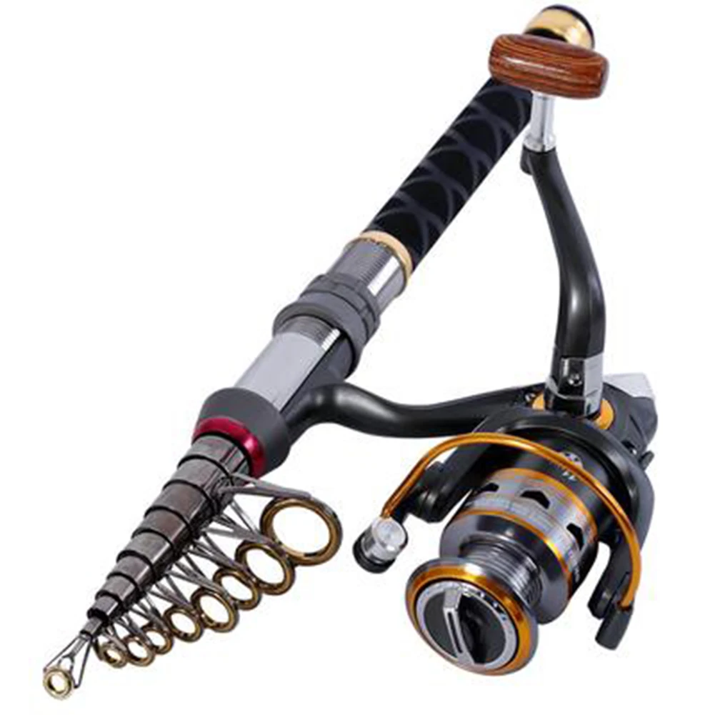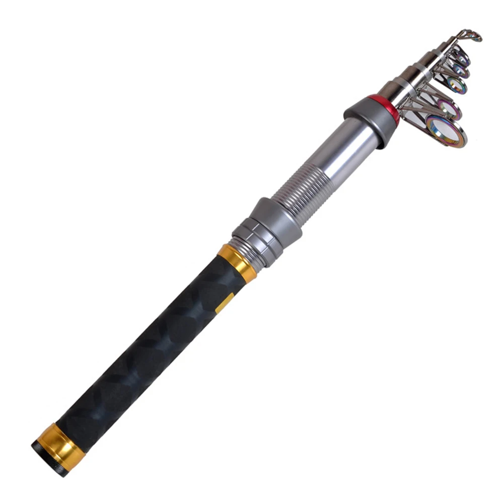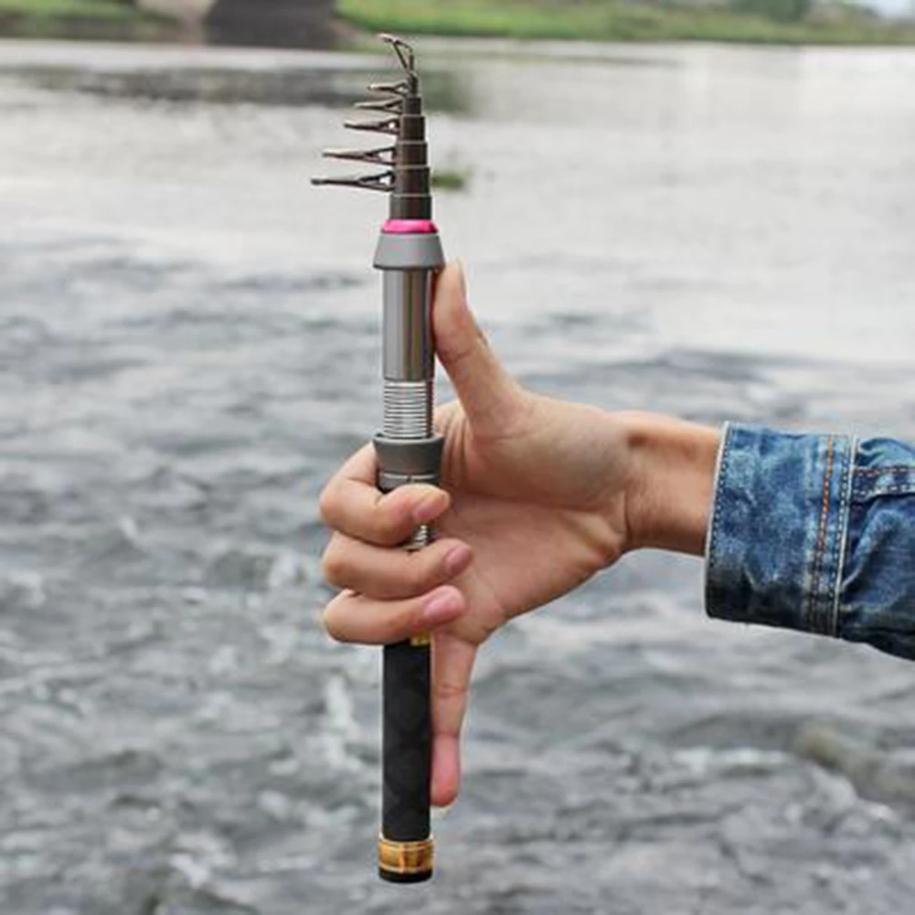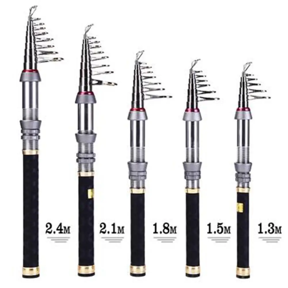 Mini caña de pescar telescópica de fibra de carbono, aparejos de pesca de mar, 1,3-2,7 m