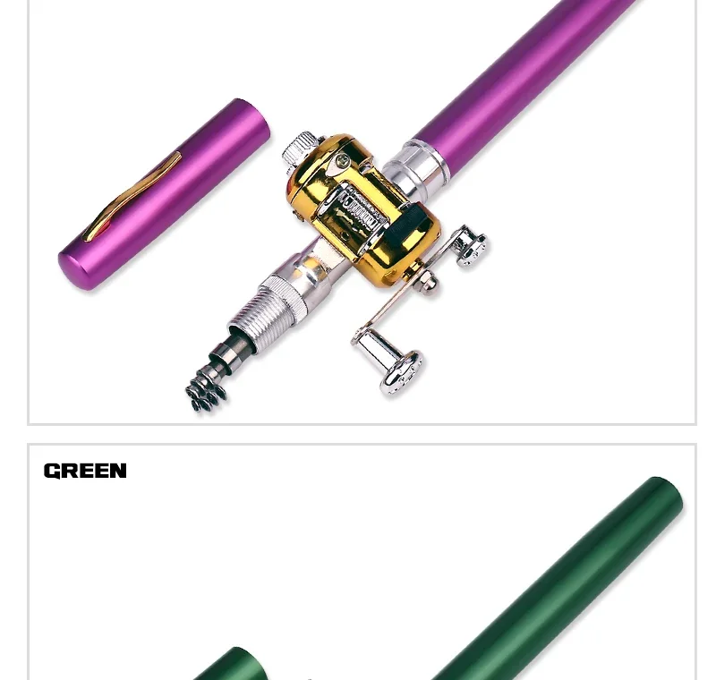Mini carrete de caña de pescar telescópico de bolsillo portátil, juego de caña en forma de bolígrafo con línea de gancho flotante, Kit de cebo, regalo Ideal para niños, 96cm