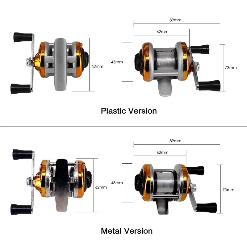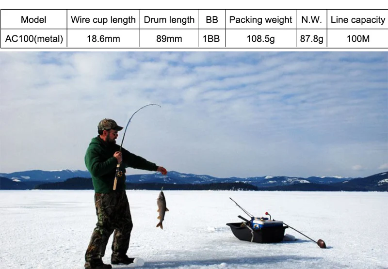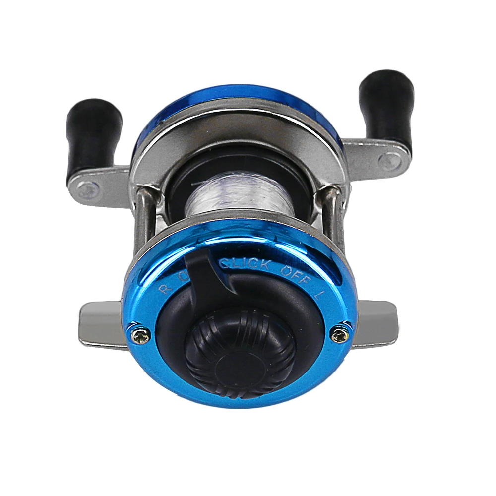 Mini carrete portátil de pesca en hielo de invierno, bobina de Baitcast, 1BB, doble brazo basculante, con líneas de 90M