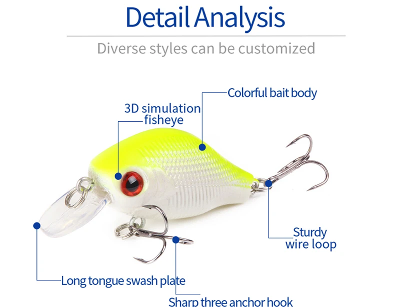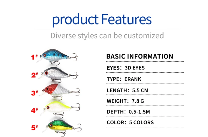 Mini cebo de manivela 55mm 7,9g señuelo de pesca Jigbait Crankbait flotante Artificial duro